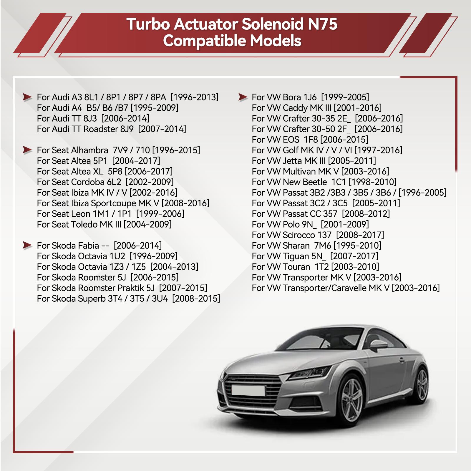 * Taille : comme indiqué sur l'image., * Numéro OEM : 701906283., * Méthode d'installation : installation de rechange. Contenu de l'emballage : 1 solénoïde d'amplification de valve. Avec son design convivial, vous pouvez facilement remplacer l'ancien solénoïde ou endommagé et faire fonctionner votre véhicule en un rien de temps. Caractéristiques : *Nom de la pièce : solénoïde de suralimentation de *Matériau : ABS., *Couleur : noir. Dossier complet : L'Electrovane N75 sur le Moteur 2.0 TFSI EA113 * Compatibilité haute universalité : non. * Fabriqué en matériaux de haute qualité, anti-corrosion, résistant à l'usure et ne se déforme pas. Numéro OEM : 701906283. pour T4 pour Caravelle pour Transporter 2.5 N75 1996-2003. pour Fait de matériaux de haute qualité, anti-corrosion, résistant à l'usure et sans déformation. pour Fait de matériaux de haute qualité et pratique. 701906283 Electrovanne de suralimentation caravelle sans déformation Numéro OE Beschreibung 【Fonctionnalité fiable】Comptez sur le solénoïde de boost de valve pour offrir une performance constante et fiable. * Rapide à installer et facile à utiliser. 【Construction】Le solénoïde de soupape est fabriqué en matériaux, assurant une performance durable. électrovanne Compatibilité T4 Caravelle HouYeen Électrovanne De Commande De Pression De Suralimentation Pour VW T4 Caravelle Transporter 2.5 TDi N75 1995-2003 Pièce Auto T4 1996-2003 Compatibilité parfaite : spécialement conçu pour le modèle 5 N75 de 1996 à 2003. Veuillez vous référer aux images fournies et vérifier le numéro OEM avant de procéder à l'achat pour vérifier la compatibilité Avec ce solénoïde, vous pouvez profiter d'une puissance et d'une réactivité améliorées.