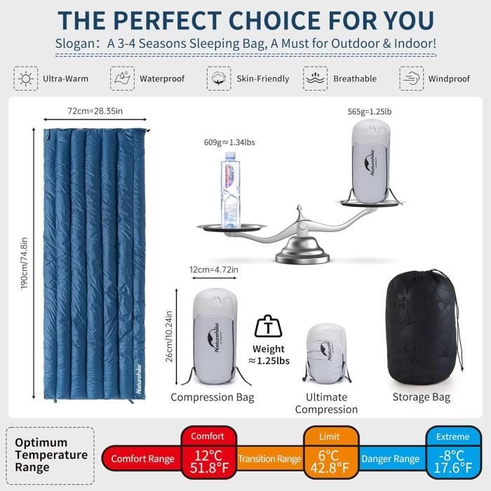 Cordon de serrage intégré à la capuche Pesant seulement 1,35 kg, il est léger et grâce à son sac de compression, il est également facile à emballer. Des caractéristiques supplémentaires comme une fermeture éclair bidirectionnelle, des sangles en bas pour l'accrochage et un cordon de serrage dans la capuche rendent son utilisation encore plus confortable. Sangles en bas pour accrochage Le sac de couchage mummy Outtec est parfait pour une utilisation à une température de confort de 10°C, et peut même être utilisé dans des températures extrêmes allant jusqu'à 0°C. Le sac de couchage Outtec est une solution pratique pour les nuits les plus froides en camping, en randonnée ou à vélo. La coupe conique en forme de momie minimise les pertes de chaleur, tandis que la capuche ajustable couvre efficacement la tête et le cou 🌞 Matériaux de Haute Qualité : Fabriqué avec un extérieur en polyester 190T et un intérieur en polyester Pongee doux, ce sac de couchage assure durabilité et confort. Hauteur du sac après compression : env., 28 cm, Fermeture éclair bidirectionnelle Son rembourrage en fibre synthétique de 250gr/m2 assure une isolation thermique optimale. Sac De Couchage Mummy Ultra Léger Sac De Couchage Adulte Et Les Enfants, Sac Couchage Ultra Light 500 G sac de couchage ultra léger Quechua adulte (Gebraucht) in Genève für CHF 8 – mit Lieferung auf... Convient comme sac de couchage adulte et sac de couchage enfant. 🌞 Conception Ultra Léger & Pratique : Pesant seulement 1,35 kg, ce sac de couchage ultra compact Outtec est idéal pour ceux qui cherchent légèreté et fonctionnalité, que ce soit pour le camping, la randonnée ou le trekking. Températures recommandées :, Confort : 10°C, Extrême : 0°C, Max : 15°C 🌞 Conception Ergonomique avec Capuche : Équipé d'un cordon de serrage dans la capuche pour une meilleure protection thermique, d'un zip bidirectionnel pour un accès facile, et des sangles pour suspendre le sac couchage après une journée d'aventure. Sac de Couchage Estival Léger Trinordic – avec Fermeture Éclair Anti 🌞 Sac de Couchage Trois Saisons : Ce sac de couchage est parfait pour une utilisation variée tout au long de l'année, avec une température de confort à 10°C, une extrême à 0°C et une maximale à 15°C. Rembourrage : fibre synthétique 250gr/m2, Poids : 1,35 kg Sac de compression inclus Doublure intérieure : polyester Pongee