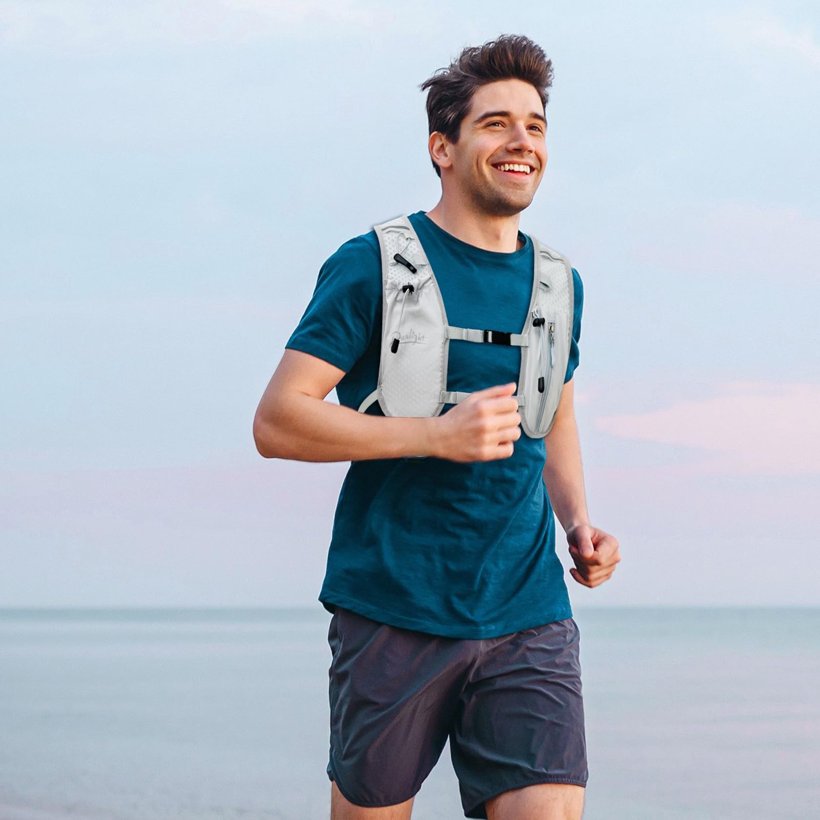 Accessoire Sport Eau Bouteille Incluse Runlight Veste De Course Pour Femmes Et Hommes, Sangles De Poitrine Réglables, Veste De Course Avec Bouteille D'eau De 1500 Ml (Blanc, Taille Unique équipement Trail Randonnée Fdit gilet Miniature Mini Gilet de bière Mini porte-bouteille de Mxzzand gilet chauffant électrique pour femme Gilet chauffant... La housse en maille ventilée garde votre dos au frais en maintenant la circulation de l'air, prévient le confort grâce à la chaleur accumulée et offre une excellente circulation de l'air et une bonne respirabilité. Fabriqué en maille légère et en tissu en nylon, ce gilet d'hydratation est confortable et facile à utiliser, vous permettant de ranger la lumière. Il ne pèse que 155 g et peut contenir 1,5 l d'eau dans le compartiment principal. Runlight Le kit de sac à dos de course aligne votre dos tout en protégeant doucement vos muscles. Les gilets d'hydratation de qualité supérieure offrent un soutien maximal avec un minimum de charge. Le gilet d'hydratation peut accompagner votre course, jogging, escalade, randonnée, vélo, marche, camping, etc. Le sac à dos d'hydratation est unisexe et conçu pour les amateurs de sport qui veulent transporter de l'eau dans leurs sacs à dos. Notre poche à eau de course de 1,5 L est conçue de manière unique pour rétrécir lorsque vous buvez, combinée avec le cordon de serrage pour garantir que la bouteille d'eau ne glisse pas, ne rebondit pas ou ne cliquete