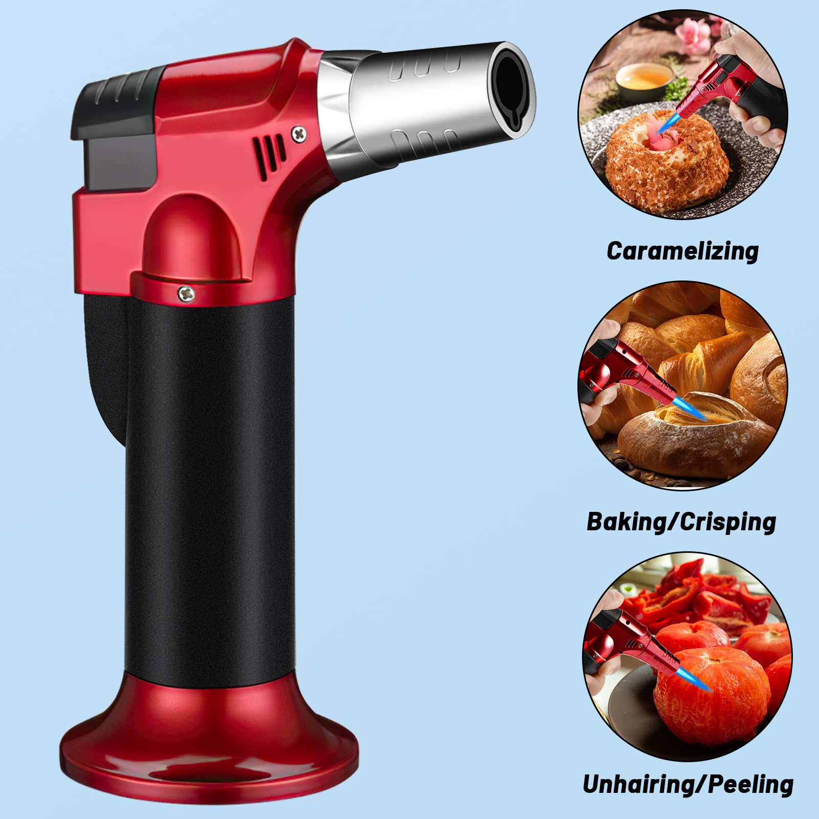 Torche De Cuisine Au Propane - Chalumeau Culinaire - Sous Vide - Lanceur De Flamme Réglable Avec Verrouillage De Sécurité - Allume-feu De Camp - Briquet à Charbon D'extérieur Pour Steak, Barbecue Et La méthode de retrait du réservoir d'essence est très simple et le remplacement est rapide Chalumeau Allumage électronique Chalumeau De Cuisine - Chalumeau De Cuisine Professionnel - Meilleur Du Briquet Torche Flamme 1300°C ★ Simple à utiliser - Pistolet de soudage à allumage électronique avec chalumeau à gaz Adoptez le mode d'allumage électronique qui est plus pratique à utiliser. Briquet Tempête Chalumeau Torche Rechargeable gaz - Réglable (Bleu)[294... UN Chalumeau à gaz flamme réglable Chalumeau de Cuisine Recharge gaz... Qu'elle soit inversée : ne peut pas être utilisée à l'envers La température maximale de la flamme du pistolet pulvérisateur peut atteindre 1300 degrés Celsius. ★ Service client - Nous nous engageons à répondre aux demandes des clients pour créer les meilleurs produits. La température de la flamme extérieure est relativement élevée et empêche le reflux de température d'affecter la durée de vie de la pointe., 4., Lorsqu'il n'est pas utilisé, il est préférable de retirer l'embout de la bouteille de gaz pour éviter les fuites d'oxydation de la bague d'étanchéité5., Ne pas secouer pendant l'utilisation6., Ne pas utiliser la tête du pistolet sans inverser la fonction inversée7., La flamme apparaît en rouge lorsque l'angle est incorrect, vous pouvez régler l'angle., 8., Le réservoir d'essence n'est pas inclus ★ Largement utilisé - La tête de torche électronique convient aux câbles électriques, aux câbles de communication, à la décoration intérieure, à la cuisson de cuisine et au traitement des meubles, etc. 65 mm/2,6 poucesDiamètre : env.