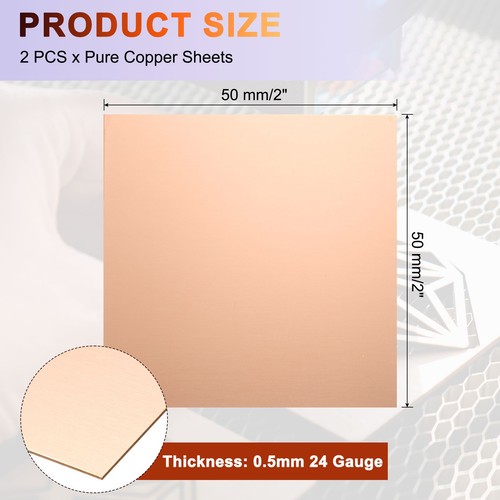 Spécifications:Taille: 50 x 50 mm/2 x 2 pouce(L*L)Épaisseur: 0., 5mm 24 GaugeMatériau: CuivreContenu De L'emballage: 2 x Feuilles De Cuivre naturel Les gants fournis protègent contre les traces de doigts et l'oxydation pendant la manipulation. Flexible : ce rouleau de tôle de cuivre peut être facilement percé et coupé avec des cisailles à tôle, des lasers, des machines de gravure ou des outils manuels. Large Application: Nos feuilles de cuivre sont utilisées pour diverses applications, notamment le bricolage, la construction, les plans de travail, les meubles, l'embossage, la fabrication, les applications électriques, la recherche et développement, la création de bijoux, et bien plus encore! Tuyau en cuivre rond - SOURCING MAP - 11mm Diamètre extérieur - 0,5mm Plaque de cuivre pur : vous recevrez 2 plaques de cuivre pur T2 mesurant 50 x 50 mm (L x l), calibre 24 (0,5 mm). Les gants inclus protègent contre les empreintes digitales et l'oxydation lors de la manipulation. Understanding Steel Gauge: A Guide to Thickness Standardization... Largement utilisé : nos plaques de cuivre sont utilisées pour diverses applications, y compris le bricolage, la construction, les plans de travail, les meubles, le gaufrage, la fabrication, les applications électriques, la recherche et le développement, la fabrication de bijoux et bien plus encore ! Description:Matériau: La Feuille De Cuivre naturel est fabriquée à partir de cuivre C1100/T2, qui offre une conductivité électrique exceptionnelle, une résistance thermique et une résistance à la corrosion. Leur haute résistance à la corrosion garantit des performances fiables dans des conditions météorologiques difficiles. Feuille Cuivre Pur 2x2 Pouces QUARKZMAN 2Pcs Naturel, 4" X 4", 24 Gauge Feuille De Cuivre 2pcs Crochet à Rideau feuille Double Crochet Cintre porte Embrasse... Leur surface lisse peut être pliée et façonnée pour des projets de bricolage ou des applications industrielles.