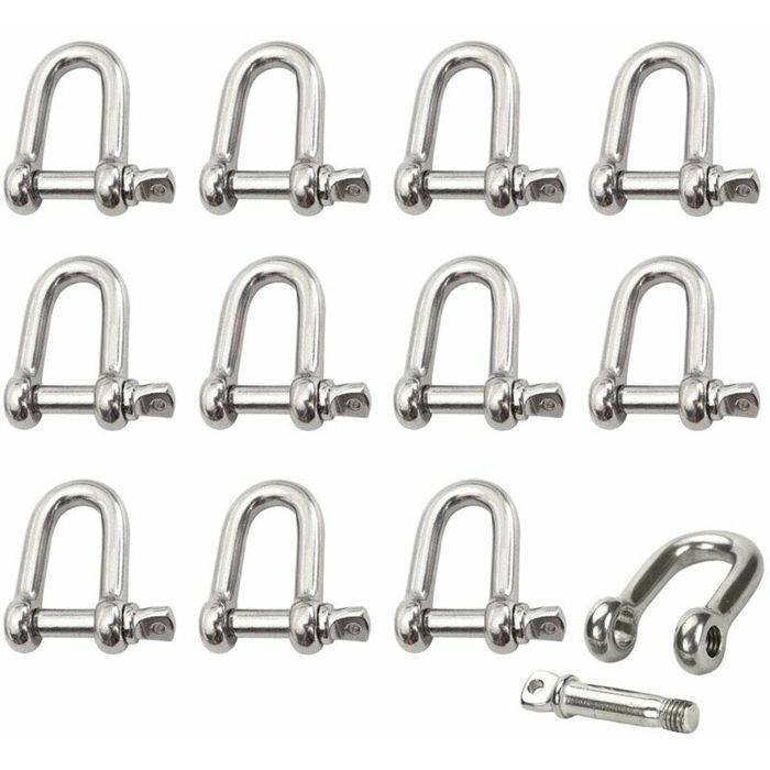 Utilisées dans les treuils, grues, téléphériques, bateaux et plus encore. Résistantes à la rouille, elles conviennent à une utilisation prolongée en intérieur comme en extérieur. Manille Acier Inoxydable Manille En Forme De D, Manille M6 En Acier Inoxydable, Manille à Anneau Accessoire Levage Marine 10 Pièces M6 D Manille, Manille 304 Inox Acier Manilles D'ancrage en Forme de D D'ancre Manilles D'anneau de D de Chaîne Manille Droite Manille de Levage pour... Grâce à un filetage précis, la connexion reste bien serrée sans se desserrer accidentellement. Nos manilles en D M6 sont conçues pour offrir une solution de fixation solide, fiable et durable. La surface lisse sans bavures empêche les blessures. Un accessoire robuste indispensable pour la sécurité et la stabilité de vos installations. Parfait pour des applications nécessitant une fixation fiable et durable. Fabriquées en acier au carbone de haute qualité, elles allient robustesse et résistance à la rouille pour des performances optimales, même dans les environnements exigeants. Adaptées à un usage intensif dans divers environnements professionnels ou personnels. 【Matériau de qualité supérieure – Durable et fiable】Nos manilles en D sont fabriquées en acier au carbone haute résistance, assurant une excellente durabilité et une grande capacité de charge. Fdit Manille d'ancrage à anneau en D 10 pièces D Anneau D'ancrage Manille Vis Goupille 304 En... Quantité suffisante pour couvrir divers besoins, que ce soit pour des projets domestiques, des activités de plein air ou des installations industrielles. Idéal pour suspendre des sacs de sable, pour la randonnée ou des applications maritimes. Avec un lot de 10 pièces, vous êtes parfaitement équipé pour tous vos projets de bricolage, d’aménagement ou d’entretien professionnel. Manille de levage en acier inoxydable de type D, arc de remorquage Dee, manilles de gréement, crochets marins, matériel de gréement, 5mm - 10mm