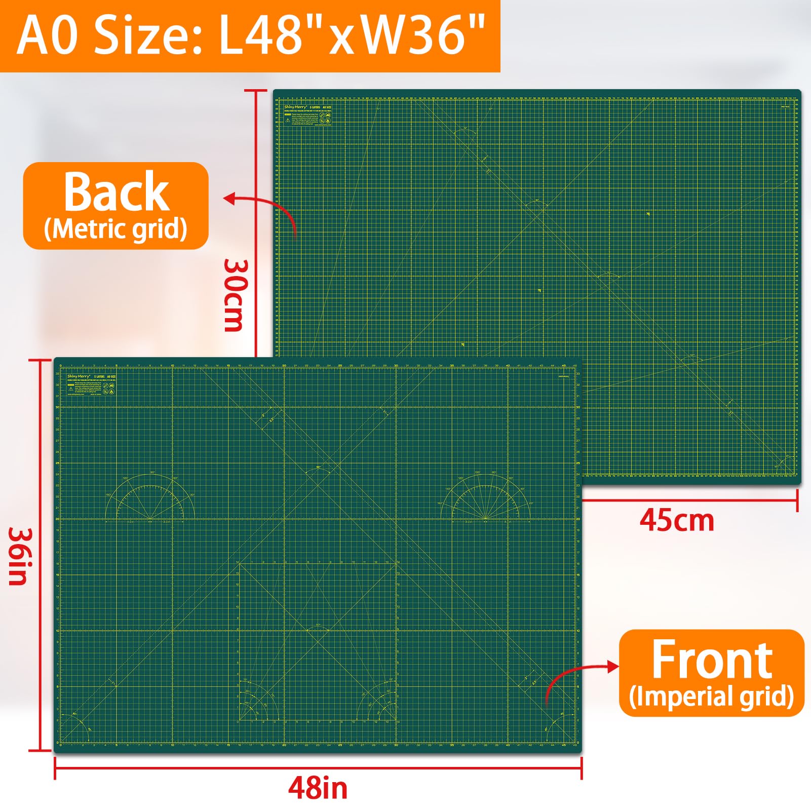 Tapis de découpe double face pour travaux manuels Ce tapis de découpe est imprimé avec des barres obliques de 30, 45 et 60 degrés pour façonner la forme, grille double face : cm et pouces, et des grilles de mesure faciles à lire des deux côtés doublent l'utilisation et s'adaptent à une variété de tailles de loisirs créatifs. Shiny Merry Tapis de découpe auto-cicatrisant, 91,4 x 121,9 Impression quadrillée double face : un côté de 86,4 x 57 cm et l'autre côté de 87 x 58 cm avec guides de marquage pour plus de précision. Cutting Mat Shiny Merry Tapis De Découpe Auto-cicatrisant, 91,4 X 121,9 Cm, Planche à Découper Double Face 5 Plis Pour Travaux Manuels, Tissu, Matelassage, Projets De Scrapbooking, Vert/vert Shiny Merry Tapis Découpe A1 60x90 Cm Shiny Merry Parfait pour recadrer des photos, du matelassage, de la couture et d'autres projets d'artisanat. Tapis de découpe auto-cicatrisant pour matelassage Shiny Merry est un fabricant professionnel de tapis de coupe, de règles de matelassage, d'outils à main et de fournitures artistiques. Shiny erry Tapis de découpe A1 - 5 couches, double face, auto... Surface antidérapante, non réfléchissante, parfaite pour le matelassage, l’artisanat, la découpe du papier, du carton et d’autres matériaux. Convient pour : tapis de table basse de salon, tapis de table d'étudiant, tapis de bureau (au lieu de tapis de souris), et la fabrication de divers travaux manuels, sculpture, patchwork, couture, artisanat, modèles, matelassage, tissu, artistes, quilters, graveurs et projets d'amateurs., Emballage : 1 pièce Tapis de découpe A1 60 x 90 cm Le tapis de découpe PARFAIT pour la COUTURE, l’artisanat, le PATCHWORKING ET LE QUILTING Avec le tapis de découpe Bonn-Design, découper devient à nouveau vraiment amusant ! Le tapis de découpe 5 couches auto-cicatrisant DIN A1 de 90 x 60 cm est imprimé des deux côtés La société entreprend la personnalisation des lots de différentes tailles et couleurs. L'usine est située à Taiwan. Format A1 avec structure solide, tapis de découpe auto-cicatrisant à 5 couches très résistantes. Ce qui prolonge la durée de vie du tapis, et permet aux coupures de disparaître pratiquement - Taille adaptée pour tous les types de travaux manuels. Pour préserver les lames des outils en toute confiance.