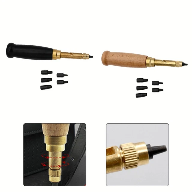 OUTIL INCONTOURNABLE POUR l'artisanat et la couture du cuir 6 tailles d Perforatrice automatique, plus de marteau., Durable, solide, robuste. Poinçon à Vis Cuir Gabarit De Découpe,Poinçon De Trou Pour Le Cuir, 5 Tailles, Outils Au Perforatrice Scrapbooking Caractéristiques : fabriqué en laiton avec poignée en bois. Poinçons de trous polyvalents : perforateur convient pour poinçonnage trous avec des diamètres allant de 1,5 mm à 4 mm, offrant des options pour répondre à différents besoins Vis autoperceuses 50pcs vis auto-perceuse croix zinguée matériel de... ♥ Diamètre du trou : 1,5 mm, 2 mm, 2,5 mm, 3 mm, 3,5 mm, 4 mm Idéal pour marquer, poinçonner, piquer et tracer. ♥ Taille de l’embout : env., 1,2 cm x 1,5 cm Caractéristiques : Matériau : laiton. ♥ Matériaux : bois et métal Outil de poinçonnage automatique.