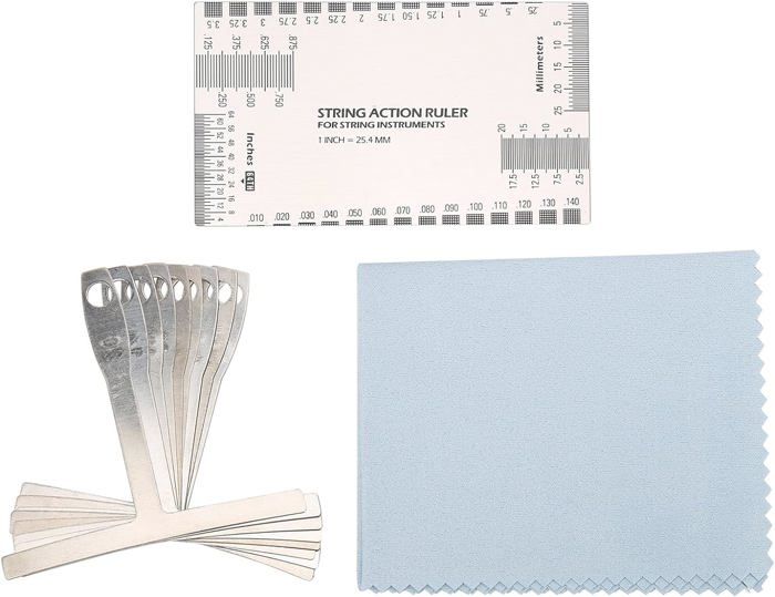 Comment devenir un guitar hero - Réglage de la hauteur des cordes Outil Luthier Hauteur Cordes Acoustique électrique Spécifications Règle De Esure De Guitare, Kit D'outils Règle De Esure Outil Réglage Guitare Métal La règle D'Addario multifonctions est un outil indispensable pour tout musicien. Votre guitare sera mesurée avec la plus grande précision. En acier inoxydable, elle vous sera utile pour déterminer la hauteur de vos , l'épaisseur du manche de la guitare, et la largeur au sillet. Régler votre guitare n'aura jamais été aussi facile ! Cette règle peut-être utilisée pour un banjo... [ Construction en métal ] : Fabriquée en métal, cette mesure de hauteur de corde garantit une fiabilité , ce qui en fait un ajout à de tout guitariste Pour ce faire, vous pouvez vous servir de vos jauges d'épaisseurs. Effectivement, la mesure s'effectue entre le dessous de la corde et le haut... [Numérique] : Cette règle d'action des cordes de guitare dispose d'un affichage numérique, permettant de mesurer la hauteur et la profondeur des cordes, essentielles pour un entretien et une configuration précis de la guitare [Pack complet] : Le kit de mesure de la hauteur des cordes comprend 1 règle, un tournevis pour les réglages et une boîte de protection pour un stockage et un transport en toute sécurité