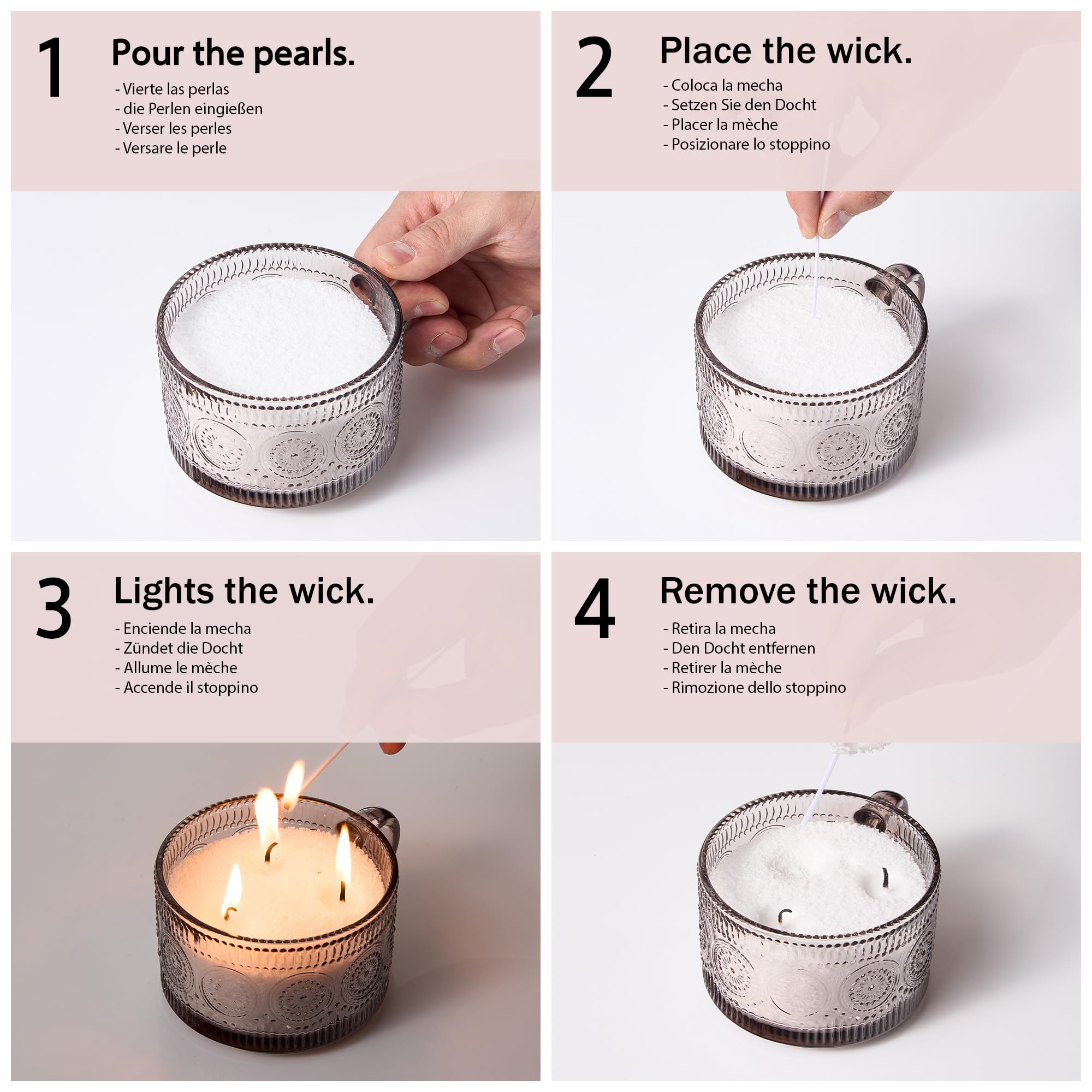 Notre cire peut être utilisée immédiatement, ce qui rend la fabrication de bougies rapide et accessible à tous. Insérer la mèche: Insérer la mèche au centre du récipient, en veillant à ce qu'elle soit bien fixée. Profitez d'un processus propre et simple. 1 kg de Granulés de Cire Végétale pour Bougies Profitez d'une combustion propre et durable., ., ., 2., Blanc pur et éclatant : la cire perlée de ce lot de bougies parfumées est d'un blanc éclatant qui met en valeur la beauté de vos bougies. Pas besoin de fondre La cire est un mix de soja, coco et palme, sans paraffine ni odeur. Brûlure propre, et tu peux réutiliser les perles non consumées. Ajoute quelques gouttes d... Polyvalence et élégance : adaptable à tout récipient résistant à la chaleur L'une des caractéristiques les plus remarquables de notre cire de bougie perlée est son incroyable polyvalence. Conçue pour s'adapter à n'importe quel récipient résistant à la chaleur sans qu'il soit nécessaire de la faire fondre, cette cire vous permet d'explorer et d'expérimenter une variété infinie de formes et de tailles. Cire Perlée Végétale DEKORD, Kit De Fabrication De Bougies Nacrées - 1 Kg - Perles Cire Blanche Nacrée Sans Paraffine De cette façon, votre bougie sera prête à être réutilisée à tout moment. Ajouter l'essence: Ajoutez quelques gouttes de votre parfum préféré. Surprenez vos proches avec un cadeau unique et personnel. Vous pouvez profiter d'une atmosphère aromatique et chaleureuse sans compromettre la santé de votre maison., 5., Cadeau parfait : ce kit est idéal pour les débutants et les fabricants de bougies expérimentés. Des élégants bocaux en verre aux mugs rustiques en céramique, la cire perlée s'adapte parfaitement, vous permettant de créer des bougies uniques et personnalisées en fonction de votre style et de vos besoins. S'adapte à n'importe quel récipient sans avoir à le fondre., 4., Sans additifs nocifs : notre kit est formulé sans paraffine, phtalates et autres additifs. Créez des bougies uniques qui reflètent votre style et votre personnalité., 100% cire végétale Conseil: pour une performance optimale, laissez la cire refroidir complètement avant de la réutiliser. Appréciez: Allumez la bougie et laissez sa lueur nacrée illuminer votre espace, créant ainsi une atmosphère magique et chaleureuse. Cette cire unique de première qualité transforme la fabrication de bougies en une expérience sublime. Comment utiliser nos cires nacrées pour bougies Une imagination sans limites: notre cire perlée vous permet d'expérimenter une grande variété de contenants, de couleurs et de senteurs. Fabrication de bougies : Comment fabriquer des bougies Plus simple et plus propre