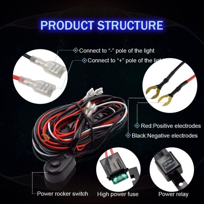 Câblage Universel ABS Haute Température Kit De Faisceau De Câbles Universel Pour Phares Antibrouillard De Faisceau Câbles 12V 40A Voiture Retrouvez tous nos faisceaux électriques spécifiques et haut de gamme pour sécuriser l’installation de vos barres LED et phares additionnels DC12V Kit de Faisceau de Câblage pour Feux de Croisement Haut 40A 16AWG [Matériel premium] Construit avec un matériau ABS de haute qualité, ce faisceau de câbles est très durable et peut résister à des températures élevées, la longévité et la fiabilité. Akozon Faisceau de câblage à 14 circuits Faisceau de Câblage de Voiture... [Caractéristique de la lumière de l'indicateur] L'interrupteur est livré avec un voyant qui s'allume lorsque la lumière de la voiture est activée, offrant une visibilité facile dans l'obscurité. [Compatibilité universelle] Avec un relais de puissance de 40A et un fusible de 30A, ce harnais peut prendre en charge diverses ailes de 72W à 300W, fournissant une polyvalence pour différentes configurations d'éclairage. améliorant la visibilité et la sécurité pendant la conduite. Spec: Type d'article: Switch Wire Harness Matériel: ABS Couleur: noir Power: Relais (12V 40A) Fuse (30A), peut être utilisé pour 72W, 120W, 180W, 240W, 288W, 300W Liste des paquets: 1 x Wiring HARNEness 1 Plugin