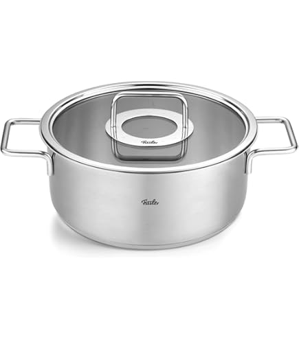 Casseroles Inox Fissler Fissler Collection Pure Jeu De Faitouts/sautoir/casserole En Inox, 6 Ustensiles Qualité Professionnelle La collection Pure de Fissler presente des ustensiles de cuisson concus pour le pur plaisir de cuisiner. Fabrication en Allemagne a 90 en acier inoxydable recycle, alliance dun design intemporel et de la qualite Fissler eprouvee Fissler Pure Collection 086 114 05 000 0 Juego de sartenes de 5 piezas | Compras con ventajas en Commodité : grâce à l’échelle de mesure intégrée en litre et quart ainsi qu’au large bord verseur qui permet de vider et transvaser les liquides simplement,le pur plaisir de cuisiner ne rencontre plus d’obstacle Fissler Copenhagen Jeu de 5 Faitouts/Cocotte/Casserole en Acier... Contenu de la livraison : 3 faitouts (16 cm, 20 cm et 24 cm), 1 sautoir (20 cm), 1 casserole à queue, 1 nettoyant inox gratuit Fabrication en Allemagne : la collection Pure présente des ustensiles de cuisson conçus pour la pure joie de cuisiner, À 90 % en inox recyclé, elle réunit design intemporel et qualité premium éprouvée de Fissler Pour tout type de feu : le fond Superthermic Fissler rend les récipients, cocottes, sautoirs et casseroles de la gamme Pure adaptés à tout type de feu, Brûleur à gaz, plaque électrique, vitrocéramique ou à induction, Passe aussi au four à 230 °C Fabrication en Allemagne à 90 % en acier inoxydable recyclé, alliance d’un design intemporel et de la qualité Fissler éprouvée.