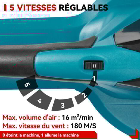 Souffleurs Souffleur de Feuilles sans Fil 21 V, aspirateur souffleur de Souffleur de Feuilles Ouragan: Le souffleur de feuilles électrique sans fil offre une vitesse maximale de 580 CFM / 160 MPH de vent à la sortie de la buse. Avec sa gamme de 6 vitesses, ce souffleur sur batterie est aussi puissant qu'un souffleur à essence Souffleur Turbo 10m3/min Souffleur Batterie 21V, Souffleur De Feuilles Sans Fil Avec 2 X 4.5Ah Batteries, Moteur Sans Balais, 3 Vitesses, Vitesse D'air 240 Km/h, Souffleur De Feuilles Pour Jardins, Terrasses Souffleur Sans Fil Ce moteur robuste offre une performance stable, une consommation réduite et une durabilité supérieure – idéal pour les travaux de nettoyage exigeants. 🚀 【Mode Turbo + 5 vitesses – Puissance instantanée à la demande】 Ce souffleur de feuilles électrique dispose de 5 réglages de vitesse pour s’adapter à chaque tâche, ainsi qu’un mode Turbo qui libère une puissance maximale pendant quelques secondes pour venir à bout des saletés les plus tenaces. Souffleur de Feuilles sans Fil 21 V,Souffleur à Feuilles avec Batterie 4,0 Ah,2 Modes de Vitesse pour l'entretien de la Pelouse,Le Soufflage de la Neige,et... Il est parfait pour l’entretien de la pelouse, le nettoyage des allées, terrasses et garages. Idéal pour les feuilles humides, les coins difficiles ou les nettoyages rapides en profondeur. Facile à ranger et à transporter, il est idéal pour un usage domestique ou en extérieur, quelle que soit la saison. 🔋 【2 Batteries 4,5 Ah – Autonomie renforcée pour les grands espaces】 Livré avec 2 batteries lithium 4,5 Ah, ce souffleur offre une tension de 21 V et une autonomie prolongée, même en mode Turbo.