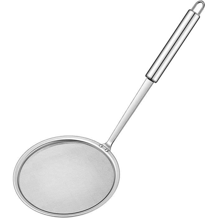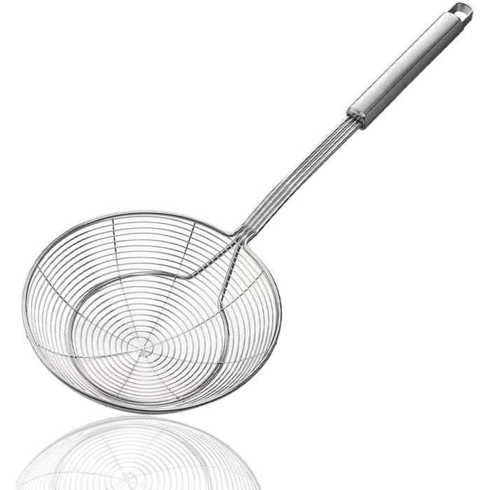 Zulay Kitchen Cuillère écumoire – Cuillère fendue en acier inoxydable Il est plus sûr et plus durable que le plastique ou d'autres matériaux. Cuillère écumoire Inox Ecumoires Cuillère De Filtre D'araignée En Acier Inoxydable 5.3 / 6,1 / 6,9 Pouces Cuillères De Fondue Chinoise ✅ Notre Avantage ✅ Notre 15,5cm Aiareozy cuillere ecumoire est fabriquée en acier inoxydable de haute qualité, avec un treillis métallique et un cadre extérieur et une poignée solides, pas facile à casser ou à rouiller. Ustensile de cuisine pratique ★ Notre cuillère à frire/passoire araignée est idéale pour séparer et capturer les aliments ou drainer l'eau. Il peut également être utilisé pour les frites, les boulettes frites, le poisson, les légumes, la viande ou les plats chauds Cuillère écumoire Cuillère d'écumoire passoire à graisse en acier inoxydable maille Fine à Long... Laisse sa nourriture croustillante et délicieuse. La passoire à long manche peut également garder vos mains loin du bac à huile ou de l'eau chaude pour éviter les brûlures. Parfait pour faire frire des frites, du poisson, des beignets, des légumes, des œufs durs, des pâtes, de la viande, des fruits de mer et plus encore avec les outils de friture essentiels. Spécification: Matériel: Acier Inoxydable Couleur: Argent M Taille: 39,5 x 15,5cm / 15,8 x 6,1 pouces Quantité : 1 Pièce Forfait Inclus: 1 * Cuillere Ecumoire Inox Remarques: 1., En raison de la différence de lumière et d'écran, la couleur de l'article peut être légèrement différente des images., 2., Veuillez permettre des différences de 0,5 à 2 cm en raison de la mesure manuelle., 3., Si vous avez des questions ou des problèmes avec les produits que vous avez reçus, veuillez nous contacter à temps. ✅ Largement Répandu ✅ La nourriture délicieuse est sur une placée cuillère écumoire pour éviter les éclaboussures et la contamination. Description Du Produit: ✅ Filtration rapide et efficace, la passoire en forme de toile d'araignée peut filtrer efficacement l'eau dans les aliments tout en filtrant l'huile et autres débris.