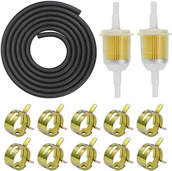 【Matériau de haute qualité】Notre filtre à carburant utilise du papier filtre de haute qualité avec une bonne filtrabilité. KIT TUYAU FILTRE à air carburateur levier PZ19 50cc 70cc 90cc 110cc... Le kit de filtre à essence peut améliorer l'efficacité de fonctionnement de votre carburateur plus facilement et plus efficacement. idéal comme durite de remplacement pour vos petits moteurs. Filtre Magnétique Essence Filtre à Carburant Kit De Filtre à De Moto Avec Tuyau De Carburant De Kit Entretien Moteur Thermique 【Kit complet de tuyau de carburant】 Le paquet comprend un tuyau de carburant de 1 m ; 10 pièces de filtre à carburant ; 10 pièces de colliers de serrage. Fabriqué en papier filtre de haute qualité, matériaux de haute qualité, vitesse de filtrage plus rapide, durable et pas facile à endommager. La coque est en plastique résistant à la corrosion et le collier de serrage du tuyau de carburant est en acier à ressort, qui a une bonne force de serrage et réduit le risque de fuite de carburant ou de tuyau d'eau. Simple et pratique à utiliser, vous pouvez remplacer directement l'ancien ou endommagé. 【Installation facile】Le kit de tuyau de carburant est facile à installer sans ajustements supplémentaires. Le tuyau est en caoutchouc de haute qualité. D'une longueur de 1 m, peut être coupé pour s'adapter à toutes vos applications. Améliorez facilement et efficacement l'efficacité de fonctionnement du carburateur, réduisez la consommation de carburant et maintenez le moteur à pleine puissance.Tuyau de conduite de carburant : le tuyau de carburant est fabriqué en caoutchouc de haute qualité avec une excellente résistance au carburant, une résistance aux basses... Spécification: ● Filtre à carburant jaune : Couleur jaune Matériau : plastique + métal Longueur : 5,5 cm Diamètre : 6mm ● Flexible de carburant : La couleur noire Matériau : caoutchouc Longueur : 1m Diamètre extérieur : 8 mm ● Collier de serrage : Couleur or Matériel: métal Diamètre : 7mm Contenu de la livraison : 10 * filtres à carburant Conduite de carburant 1 * 1 m 10 * colliers de serrage Facile à manier. Tuyau de 1 m, vous pouvez le couper séparément pour répondre à vos différents besoins. Garosa Tuyau de filtre à essence Tuyau de filtre à carburant avec 2 éléments filtrants pour
