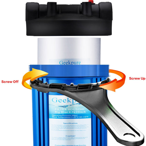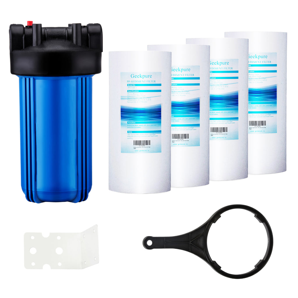 ✪ Quelles sont les options de filtres ? 1., Filtre filé en polypropylène, élimine le sable, la saleté, les sédiments. Amazon Filtre Eau Geekpure 10 Standard Boîtier Bleu Pour Filtre 2,5 X 10 -3/4 Femelle BSP Entrée/Sortie Avec Filtre Eau Potable Maison Juste le boîtier dans la boîte, les cartouches filtrantes sont vendues séparément Boîtier Filtre Maison 6.3x50.8cm Geekpure Système De Filtre à Eau Potable à Osmose Inverse En 6 étapes Filtre Eau Plus d'informations précieuses : ✪ Quelle est la dimension du boîtier bleu ? S'adapte à tous les filtres de taille standard de 6,3 x 50,8 cm. Durée de vie : 6 mois., ASIN : B07DLRNP56., 2., Filtre à charbon actif granulaire, élimine le chlore, le goût et les odeurs, les particules très fines. Geekpure Boîtier de filtre à eau pour toute la aison - Bleu - Convient... Boîtier uniquement, les cartouches filtrantes sont vendues séparément Il est important que le joint torique soit correctement placé dans la rainure d'une fuite d'eau. Ce boîtier de filtre a une pression de fonctionnement maximale de 90 psi, si vous pensez que votre pression d'eau dépasse à tout moment 80 psi, un régulateur de pression doit être installé avant le boîtier du filtre Il est recommandé de régler le régulateur de pression à 70 psi ou moins., 3., Le joint torique en caoutchouc fournit l'étanchéité entre le bouchon et le carter. Durée de vie : 6 mois., ASIN : B07DLS71NJ., 3., Filtre à charbon pour éliminer le chlore, le goût et les odeurs, les particules très fines. Boîtier bleu de 50,8 cm, ports de 1,9 cm avec bouton de décompression pour haute pression, avec clé en plastique et support en métal. Caractéristiques : Pression maximale : 90 psi (6,2 bar)., Température : 5 à 45 °C. Compatible avec tous les filtres de taille standard de 6,3 x 50,8 cm.