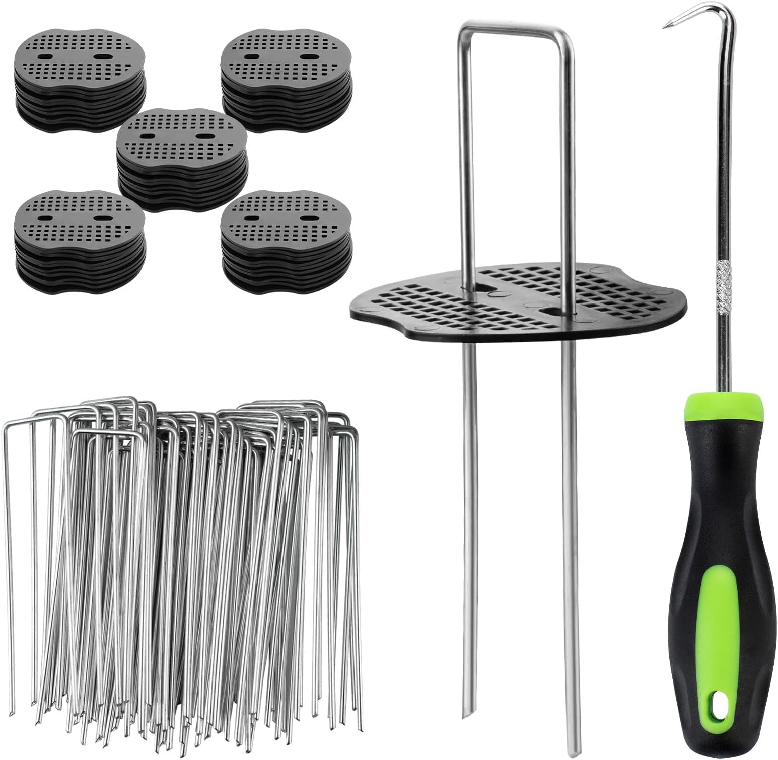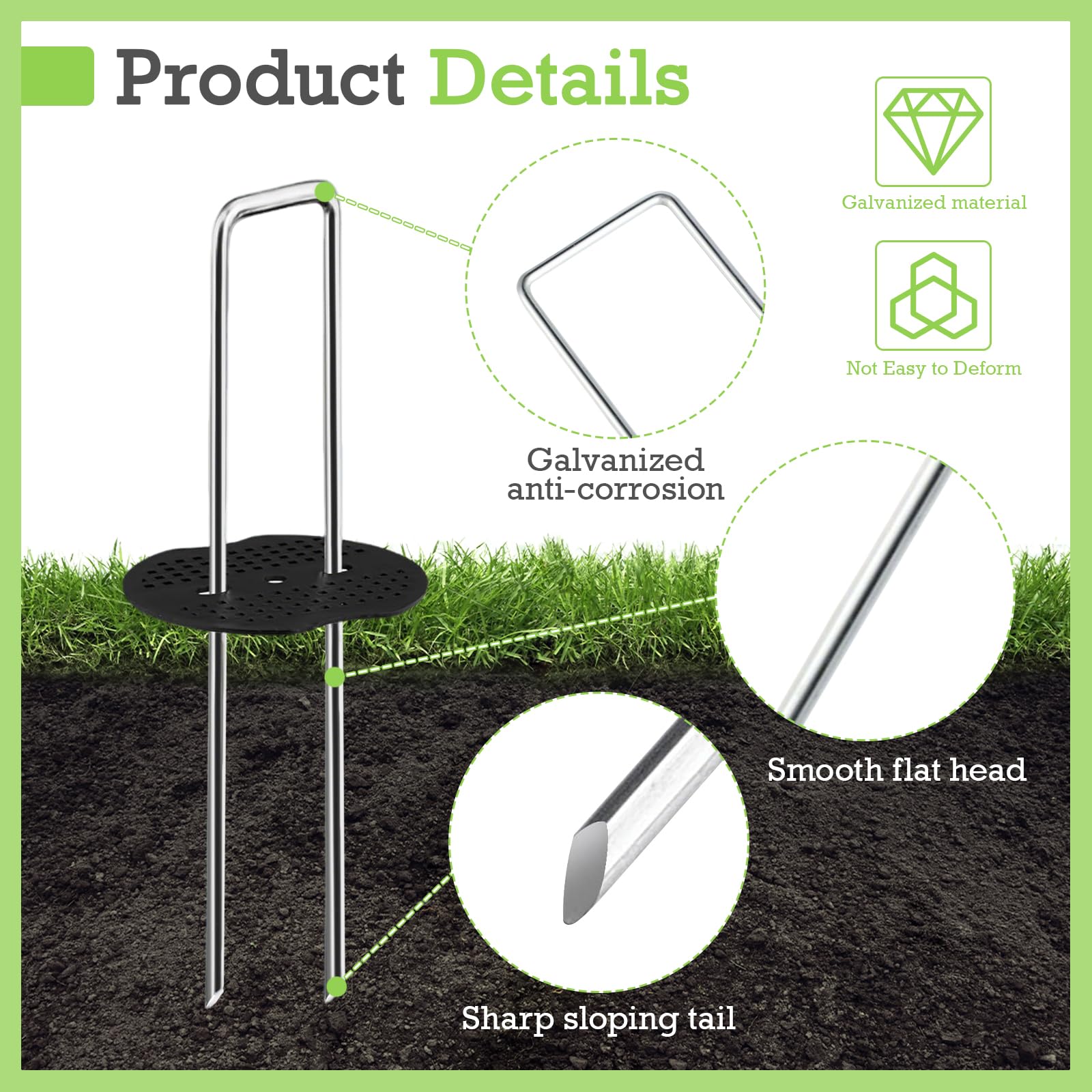 EDIESI, Sardines de Fixation, Sardines Caping, 100 Pcs 16 Rondelles... Facile à utiliser : Ancrages de 150 mm de longueur avec pointe tranchante qui pénètre facilement dans le sol, les tissus de jardinage et le bois. Conception optimisée : Tête élargie avec rondelles pour augmenter l’adhérence, répartissant uniformément la charge et assurant une fixation solide des tissus non tissés, câbles ou autres matériaux. Sardines Gazon Synthétique Bâche 50 Pièces Sardines De Fixation + 50 Pièces Rondelle, 150×4mm,2,5 Mm, 15CM Forme De U Résistant à La Rouille, Piquets De Sol Galvanisés, Pour Clôture, Bâche, Gazon Artificiel, Herbes Camping Tente Piquets Applications polyvalentes : Idéal pour fixer gazon synthétique, toile anti-mauvaises herbes, tissu non tissé de jardinage, tapis de stabilisation, pelouse, protection de clôtures et tentes de camping. Si vous êtes à la recherche d'un moyen d'ancrer votre tente de manière fiable dans un sol rocailleux et dur, ce lot de 4 piquets de fixation est là pour vous aider ! Les piquets de fixation XXL en acier font leur travail sans aucun problème, et sans même se tordre Matériaux de haute qualité : Ancrages de sol antirouille et fixations en acier inoxydable galvanisé, solides et durables, difficiles à plier, 100 % réutilisables — parfaits pour le jardinage et le camping. 50 Pièces Sardines de Fixation en Acier Galvanisé, 150 x 40mm