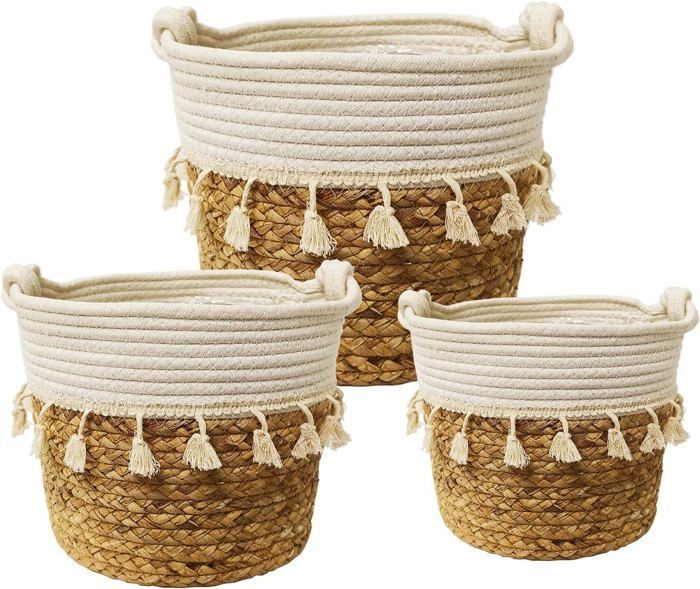 Panier Osier Rangement KMERCE 2 Grands Caches Pot En Osier, Panier à Plantes D'intérieur, Pot De Fleurs Jardin Decoratif En Seagrass Avec Doublure Plastique Étanche Et Poignées, Panier De Rangement, Diamètre 22cm Et 28cm Caches Pots En Jonc De Mer Naturel Panier Cache Pot(. 44 résultats. ) ; Kmerce / Mobilier de jardin · 68,38 € ; Praknu / Mobilier de jardin · 45,98 € ; Kmerce / Mobilier de jardin · 59,98 € ; Kmerce... Lk Lot De 3 Pots En Osier Pour Fleurs Et Plantes | Pot Décoratif Pour 【Apparence Simple et Elégant】Grand pot pour plante interieur, Style nordique bohème, couleur simple, adapté pour les plantes de grande et moyenne taille telles que le monstera, les serpents, le sisal, les cactus, les arbres en caoutchouc bordeaux d'intérieur. Cache Pot Osier Panier Osier Rangement Grande Plante Pot Pots pour... 【Cadeux Idéal à Offrir】 La Cache pot pour plante est un bon cadeau pour vos familles ou amis, utilisation pour les plantes d’intérieur, ce panier sublime votre salon et apporte une touche de modernité. 【Avec Poignée et Doublure en Plastique Étanche】Avec les poignées renforcées, le panier en osier est facile à déplacer. 【Utilisation Polyvalent】 Le panier peut être utilisé comme une cache pot de fleurs, mais également pour stokage des jouets, des vêtements, des cosmétiques,etc. Usage: Cache-pots de fleurs, Panier plante, Pot jardin, Panier osier plante, Panier rotin décoratif, Panier de rangement, etc.