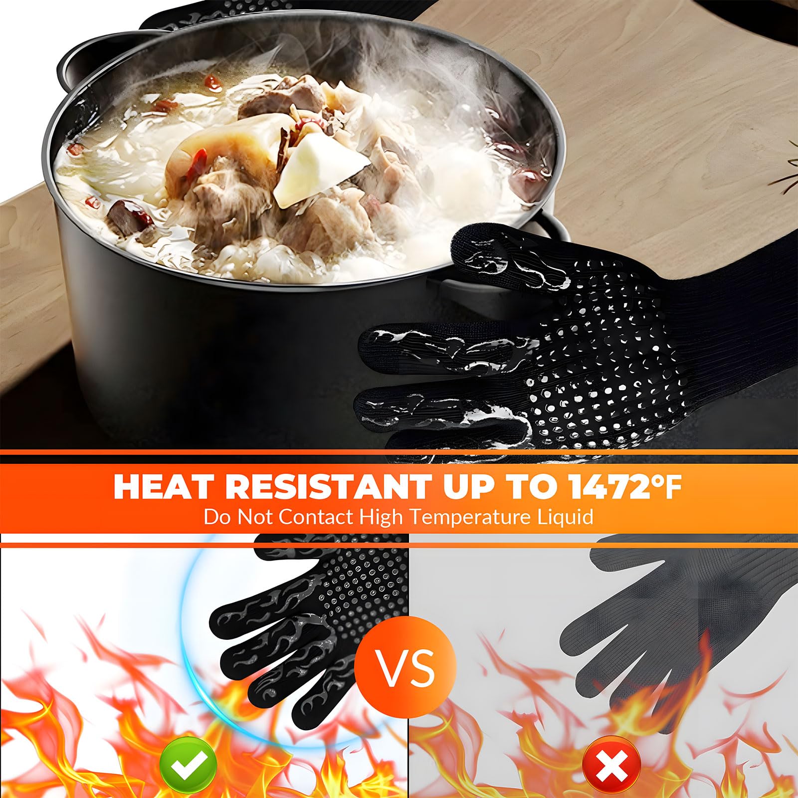 Triple matériau de qualité supérieure : les gants de barbecue résistants à la chaleur se composent de 3 matériaux. Gants Pour Barbecue Gants De Four Et De Barbecue Recalma Résistants à La Chaleur - Jusqu'à 800 ° C - 2 Gants Manches Longues Protection Gants ignifuges pour barbecue, résistants à la chaleur de 800 °C, gants de cuisine antidérapants en silicone, gants de cuisine pour barbecue, cuisine, friture Triple matériau de qualité supérieure : les gants de barbecue résistants à la chaleur se composent de 3 matériaux. Ultra-résistant à la chaleur]Fabriqués dans un matériau de haute qualité résistant aux hautes températures (jusqu'à 800 °C), ces gants offrent une résistance à la chaleur supérieure à celle des autres gants ignifugés Parfait pour protéger votre main lorsque vous manipulez des pinces à barbecue, allumez du charbon dans le démarreur de cheminée, retirez la viande du gril, coupez, cuisinez, faites de la pâtisserie, travaillez du bois, soudez ou manipulez des articles super chauds à l'extérieur. Grande taille de 34 cm : ces gants de barbecue sont conçus avec une paume de 20,3 cm de large pour s'adapter à la plupart des mains, et des manches de 13,8 cm de long pour offrir une protection maximale à votre poignet et bras contre les brûlures lorsque vous atteignez profondément dans un grand fumoir ou un four. Gants de barbecue, résistants à la chaleur jusqu'à 800 °C, ignifuges en silicone antidérapant, lavables, pour la cuisine et la pâtisserie (noirs). Vendu par La... Résistance à la chaleur améliorée : nos gants de barbecue offrent une plus grande résistance à la chaleur (800 °C) des anciens gants (500 °C). La première couche de silicone offre une prise en main antidérapante pour garantir que vos objets ne glissent pas facilement de vos mains. Faciles à porter, à nettoyer et à ranger : il n'y a pas de différence entre la main droite ou gauche des gants de barbecue, vous pouvez les porter des deux côtés. Gants De Four Et De Barbecue Recalma Résistants à La Chaleur Le deuxième matériau est la fibre d'aramide ultra-haute résistance, célèbre pour sa capacité à résister à des températures élevées et à une utilisation répétée. Remarque : les gants de cuisine résistants à la chaleur peuvent prolonger la durée pendant laquelle des objets chauds peuvent être tenus.