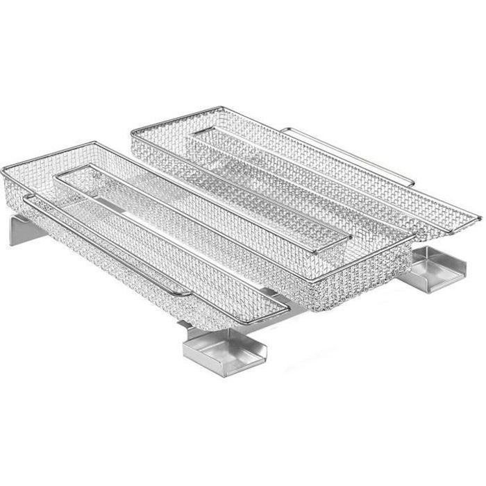 Accessoire Fumaison Maison Générateur De Fumée Froide Forme De M, Fumoir Professionelle Générateur Sciure De Bois Froid Générateur de Fumée Froide Ronde pour Fumoir Professionelle - Boîte De Générateur de fumée pour Barbecue, générateur de fumée Froide pour... La spirale de fumage à froid lui permet d'être fumé à froid pendant 5 à 20 heures, idéal pour les longs temps de cuisson. Spécifications :- Couleur : Argent- Taille : 22,5 cm x 21 cm x 5 cm ; Environ 300 grammes- Matériau : acier inoxydableLe forfait comprend :1 x générateur de fumée froide4 x crochets2 x brosses En raison de la construction en fil de fer, la fumée froide spirale même les copeaux de fumage. Le générateur de fumée peut être utilisé pour fumer de la viande, du fromage, etc. Idéal pour fumer à froid du poisson, des légumes, de la viande, de la volaille, du fromage, etc. La conception en forme de M permet une distribution efficace de la fumée, une faible consommation de poussière de fumage dans le gril de fumage et le four de fumage à brûleur à gaz. Lentement, la farine de fumée du générateur de fumée froide s'enflamme et diffuse une fumée aromatique pendant 12 heures maximum. Générateur de Fumée Froide pour BBQ Générateur de Fumée Froide en Forme...