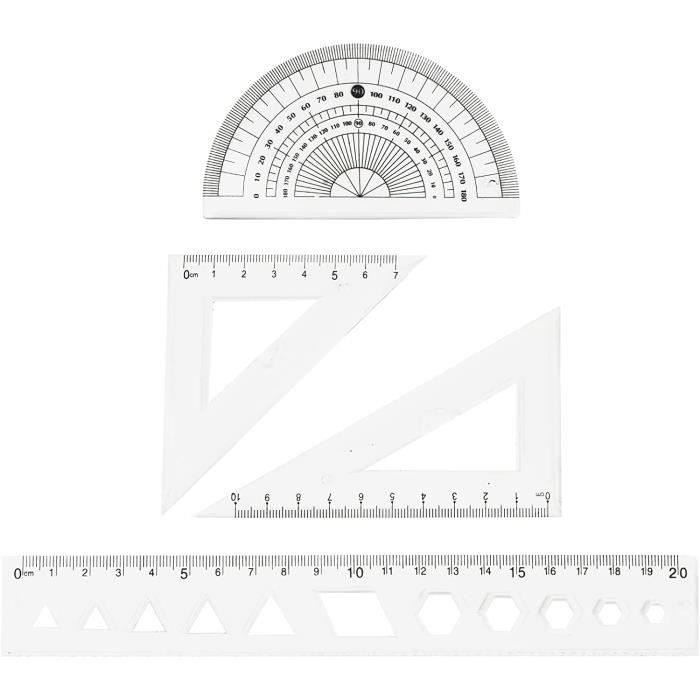 Set d'instruments de mathématiques : règle équerres rapporteur... C'est un outil indispensable, couvrant tous les besoins mathématiques pour le dessin et la mesure géométriques. 【Service de haute qualité】Satisfaction garantie, pour toute demande avant ou après-vente, n'hésitez pas à nous contacter, nous serons heureux de répondre à toutes vos questions. Fournitures Scolaires Dessin Technique Westcott Set De Géométrie 4 Pièces | Set De Mathématiques Outils Dessin Technique étudiants Ils sont votre meilleur allié pour dessiner et mesurer. Mars 569 - Set De Géométrie Plastique Bleu Transparent (Règle 30 Cm... Sûrs et respectueux de l'environnement, ils sont résistants à la rouille, à la flexion et faciles à ranger. Matériel école Collège Maped Set Géométrie 4 Pièces - Règle 30cm