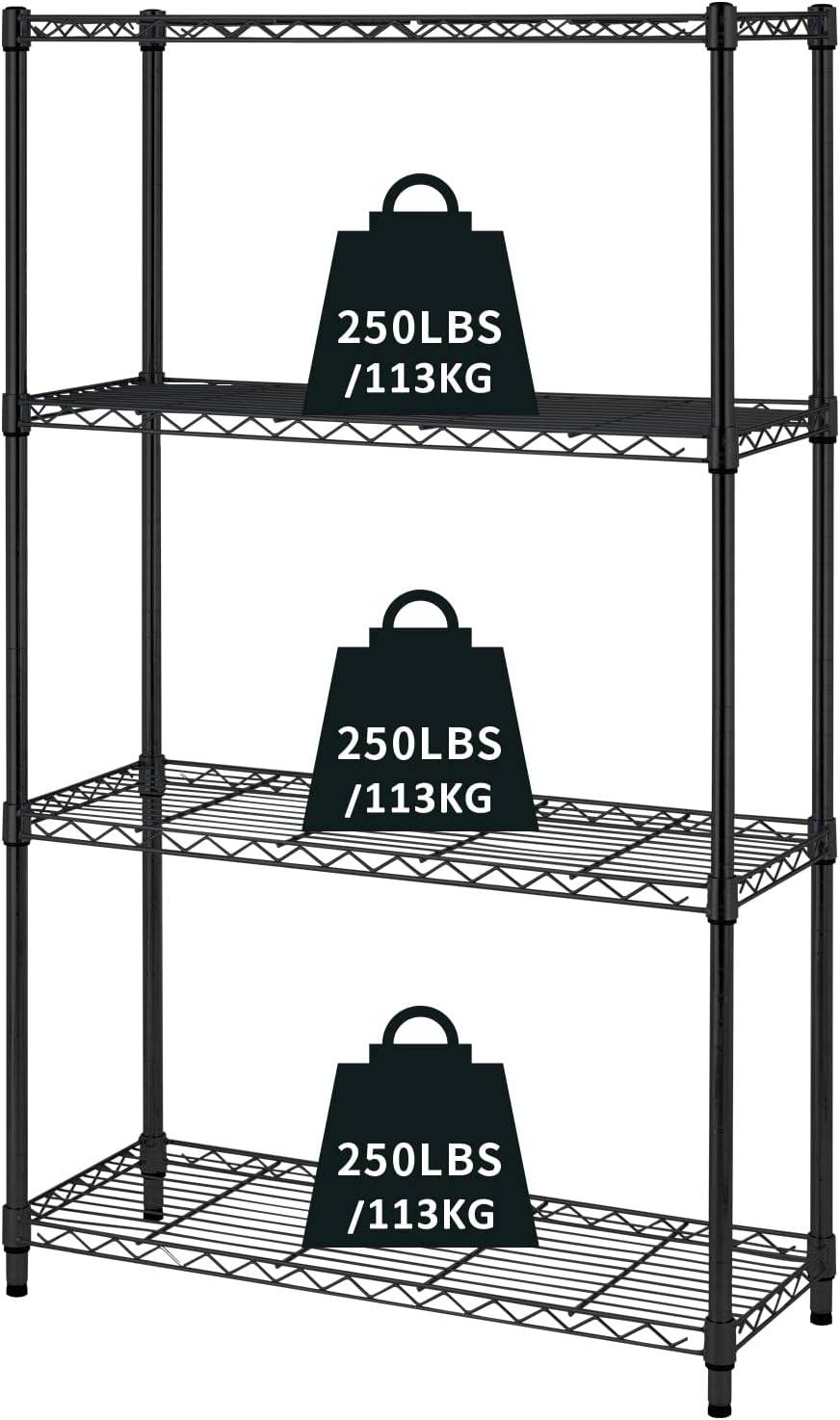 L'étagère peut être placée dans votre cuisine, bureau, garage, buanderie et plus d'endroits pour fournir un énorme espace de rangement pour rendre la maison bien organisée. Charge maximale : Capacité totale : 227 kg. L'unité à 5 étagères est fabriquée en fil métallique robuste revêtu par poudre pour supporter une capacité de 45,4 kg par étagère. Le revêtement lui donne un aspect beaucoup moderne et moins industriel, il s'adaptera facilement à n'importe quel espace de travail ou personnel. De haute qualité, peut résister à des charges lourdes. Ce support de rangement en métal peut être compacté pour un rangement et un transport faciles. Qu'il s'agisse d'une cuisine, d'un salon ou d'un espace commercial comme un entrepôt ou un bureau, il s'adapte parfaitement Il n'y a pas de problème pour placer l'étagère dans votre cuisine ou votre salle de bain Étagères métalliques multifonctionnelles. Étagères faciles à nettoyer : Le design du fil ouvert permet la circulation de l'air et empêche la poussière de se déposer facilement. étagère 5 Niveaux 41x30x130 Cm Noire Étagère De Garage à 5 étagères, étagères En Métal Avec Roues (95,3 Kg Etagere Charge Lourde Étagère de Rangement à 5 Niveaux Réglable avec Cadre en Métal Galvanisé... Matériaux de qualité supérieure : (ce produit ne contient pas de crochets et de doublures d'étagère). - Vous pouvez régler le pied de nivellement pour obtenir le statut idéal si l'étagère n'est pas assez robuste. - Finition : revêtement poudré. Rangement intelligent : les étagères métalliques réglables de taille parfaite (42 x 30 x 140 cm) les rendent plus adaptées pour les espaces étroits ou les coins d'une pièce pour ranger des objets tels que la cuisine, la salle de bain, le balcon, le garage, l'entrée ou le bureau Étagère de rangement en métal à fil réglable de niveau commercial 5 NSF robuste sur roulettes - Chine Étagères d'affichage mobiles et rack d'affichage mobile prix - 40 clips - 1 notice de montage (français non garanti) Aucun outil n'est nécessaire, il suffit de clipser les manchons en plastique noir en deux parties autour des poteaux, par incréments de 2,5 cm pour une personnalisation ultime. Il ne faut que 10 minutes pour l'assembler. Étagères réglables en hauteur.