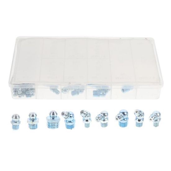 Graisseurs M8 Vissables Kit 53 Pièces Graisseurs M8 - Angles 45°, 90°, 180° + Bouchons - Pour Lubrification Mécanique Pompe A Graisse Electrique Il ne glisse pas en rotation, ce qui assure que le mamelon de graisse s'engage étroitement avec la ligne de graisse et empêche le mamelon de graisse de tomber ou de fuir du côté. Raccords Graisseur M8 Kit D'Assortiment De Graisseur, M6 M8 M10 Assortiment De Graisseurs, 60 Pièces Graisseur, Filetés De Graissage, Graisseur A Visser Avec 10 Pièces Bouchon De Graisseur, Pour Équipement Mécanique Raccords De Graissage M8 【Prévenir les fuites d'huile】 Les fils de mamelon de graisse sont soignés et profonds. Graisseur droit M8 Acier zingué - s Kits de graissage - Comparez les prix pour professionnels sur... 【Peut être utilisé pour les machines lourdes】Il peut être utilisé pour remplacer les raccords de graisse manquants et endommagés dans les lignes de graisse hydrauliques, adaptés à la plupart des voitures, des tracteurs. La bouche du mamelon de graisse est plate et lisse. Motocyclettes, camions, applications agricoles et industrielles. Un total de 100 pièces, ils peuvent répondre à tous vos besoins. 【Facile à stocker】 Les raccords de graisse sont placés dans une boîte de stockage transparente et robuste. 【100 pièces M8 raccords de graisse métrique】Ce kit 100 pièces raccords de graisse métrique, raccords droites à 180 ° qui peuvent répondre à tous vos besoins.