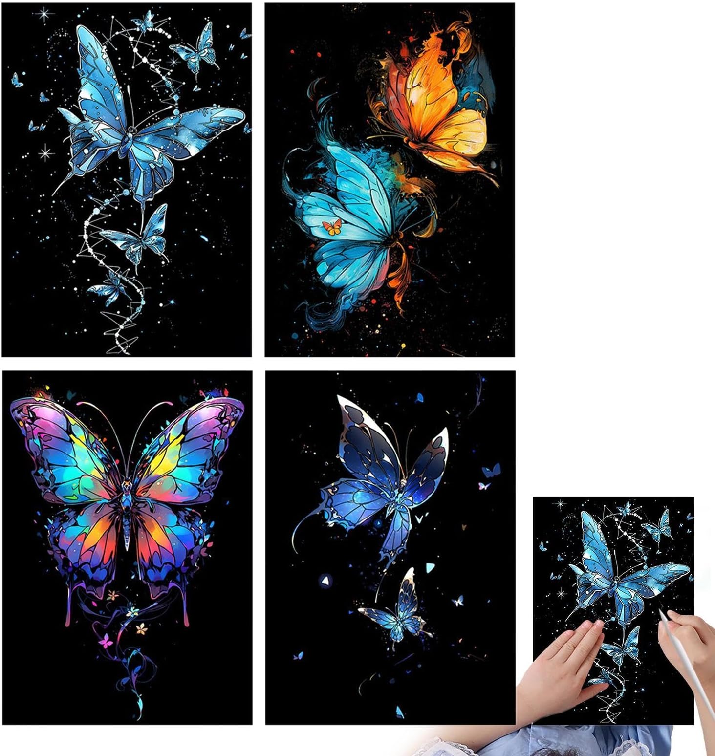 Idéal pour les anniversaires, les fans de loisirs créatifs ou toute personne cherchant une activité artistique et divertissante. Art à Gratter Lumineux Noir VLYX Art De Grattage Pour Adultes Et Enfants, Kit De 8 Notes Arc-en-Ciel Lumineux Avec Outils De Grattage, Fournitures Créatives Pour Enfants & Adultes (Océan & Ciel Nocturne Feuilles à Gratter Animaux Détendez-vous et créez avec des outils écologiques pour adultes, idéaux pour des designs uniques, similaires à l'art en feuille métallique. Kit de grattage pour enfants et adultes - 4 cartes à gratter, 2 outils à gratter, 1 brosse de nettoyage, 3 stylets en bois - Art à gratter arc-en-ciel pour soulager le stress, la créativité et la [Matériaux de haute qualité]: Fabriqué à partir de carton non toxique et respectueux de l'environnement avec un revêtement noir élégant. [Œuvres d'art lumineuses dans l'obscurité]: Nos gravures brillent dans le noir : grattez la surface pour révéler des motifs colorés sur un papier arc-en-ciel. Lot de 12 feuilles de papier à gratter arc-en-ciel pour loisirs créatifs, série ville, vue nocturne pour adultes et enfants, kits d'art artisanal avec 6 outils... Parfait pour les enfants et les adultes recherchant une activité créative ou un premier pas vers l'univers artistique. Spécifications : Couleur : multicolore Matériau : papier Dimensions du produit : voir la photo ci-dessus Quantité : 14 pièces Contenu du paquet : 8 pièces * art à gratter 1 ensemble * outils de grattage Stimulez la créativité des enfants et permettre également aux débutants de découvrir l'art de la gravure lumineuse. Kits de peinture à gratter adaptés aux adultes et aux enfants, ensemble [Kit de gravure complet pour tous les âges]: Ce kit comprend 8 gravures sur le thème des animaux au format A5, 5 stylets de gravure et une brosse de nettoyage. [Cadeau unique pour toutes les occasions]: Les feuilles de gravure arc-en-ciel sont un cadeau inspirant pour les enfants et un souvenir artistique pour les amateurs d'art gravé.
