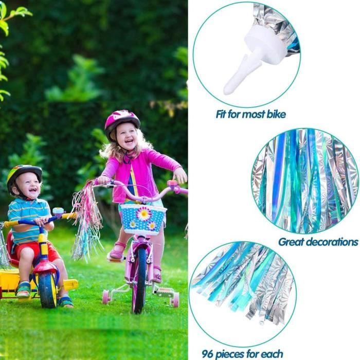 Streamers Guidon Vélo Enfant Duokon Poignée De Guidon De Vélo 1 Paire De Poignées De Guidon De Vélo En PU Cousues à La Main Streamers Dans Le Vent Pour Tricycle STREAMERS DE VÉLO durables avec glands étincelants ajoutent du flair à Panier de vélo pour enfant - Kit Streamer - Guidon de vélo - Panier en osier avec pompons... - Une façon simple et intéressante pour les enfants de déguster leurs vélos. - Rendez vos vélos autres véhicules pour enfants plus beaux et gracieux. Les Sparkly Streamer volent et dansent dans le vent lors de l'équitation. Description : - Couleur : conforme à l'image. Facile à installer : insérez dans le guidon de la plupart des vélos, tricycles et scooters. Rendez vos vélos autres véhicules pour enfants plus beaux et gracieux. Accessoire de vélo parfait et cadeau pour les enfants. Une façon simple et amusante pour les enfants d'habiller leurs vélos.- Les serpentins scintillants voleront et danseront au vent pendant la conduite.- Installation facile : s'insère dans le guidon de la plupart des vélos, tricycles et trottinettes pour enfants.- Rendez les vélos ou autres véhicules pour enfants plus beaux et plus gracieux