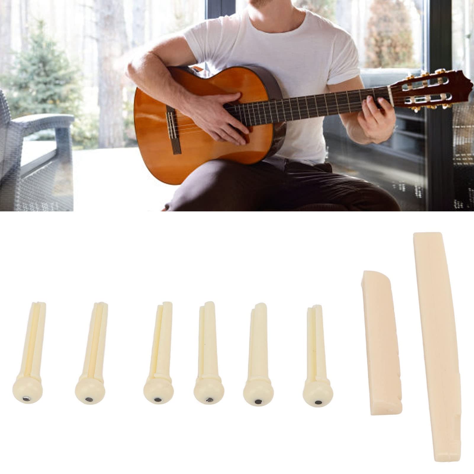 Jeu écrou Selle Goupilles SURENHAP Selle D’écrou De Guitare Folk Goupille De Chevalet De Guitare Amélioration Son Guitare Selle d'Os Vache Sillet de Chevalet Selle Goupille de Pont pour Guitare... Sillets guitare folk & acoustique - Tête et chevalet, os ou Pont de guitare : comprenant 1 écrou de guitare, 1 selle de guitare et 6 broches de pont de guitare, ce qui facilite le remplacement. Set Selle d'Os de Guitare, sillet de chevalet de Guitare pour 6 cordes... De meilleurs sons : assurer un bon transfert de vibration pour produire une intonation claire, ce qui permet également une excellente qualité sonore. Facile à installer : léger et de taille compacte, l'installation pratique peut être rapidement terminée. De meilleurs sons : assurer un bon transfert de vibration pour produire une intonation claire, ce qui permet également une excellente qualité sonore., Fonctionnalité : 1., Chevalet de guitare : comprenant 1 écrou de guitare, 1 selle de guitare et 6 broches de chevalet de guitare, ce qui facilite le remplacement., 2., De meilleurs sons : assurer un bon transfert des vibrations pour produire une intonation claire, ce qui permet également une excellente qualité sonore., 3., Joli design : combinant un style simple et une jolie couleur, le jeu d'écrous et de selles de guitare est une jolie décoration de guitare., 4., Bon matériau : l'application d'un matériau ABS de qualité supérieure apporte une excellente durabilité avec l'usure, les chutes et une longue utilisation., 5., Facile à installer : léger et de taille compacte, l'installation pratique peut être rapidement terminée. Description du produit Sillet d'écrou de guitare folk, goupille de chevalet de guitare Joli design Installation facile ABS Taille standard Bonne qualité sonore Match pour jouer