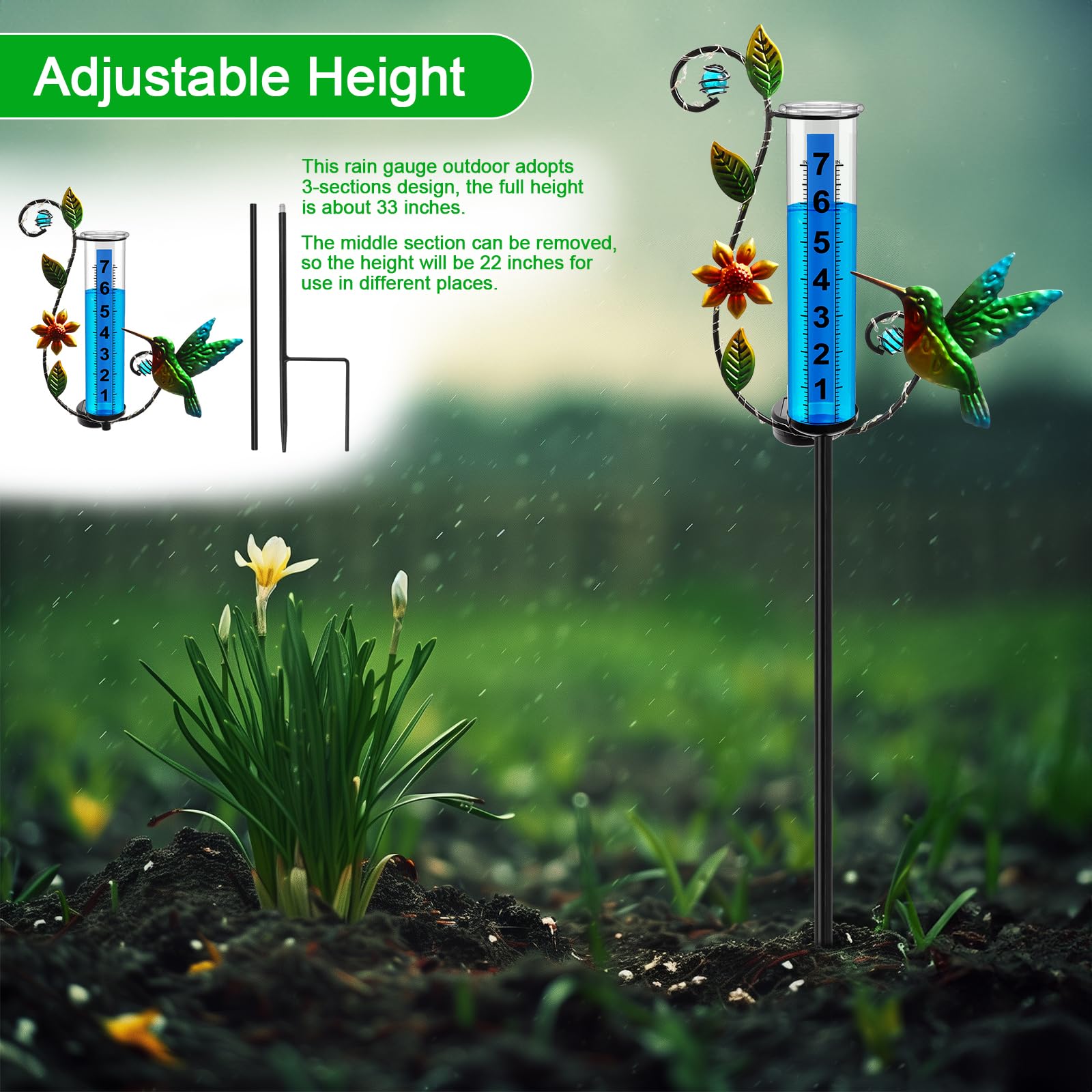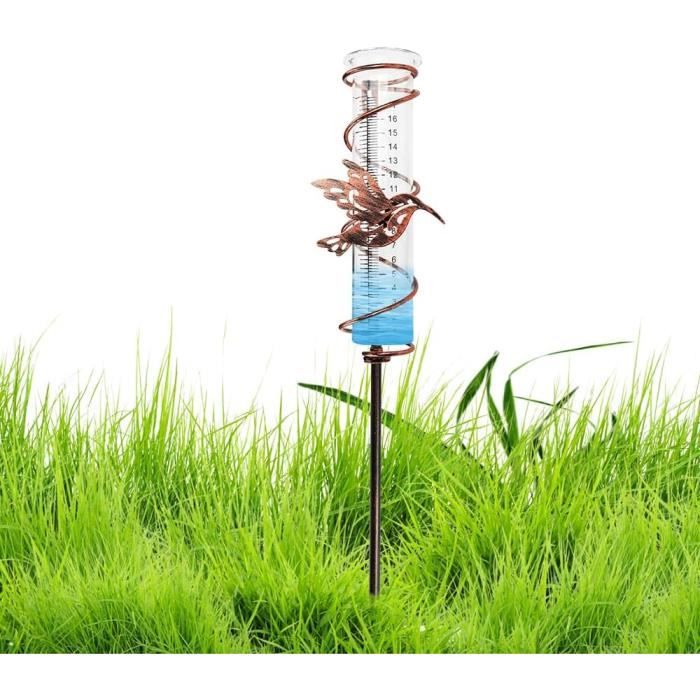 Pluviomètre En Verre Pluviomètre De Jardin, Pluviomètres Avec Piquet En Métal, Animal Design Pluviomètre Décoratif Résistant Température A-t-il beaucoup plu au jardin ? Ce pluviomètre en verre gradué jusqu’à 25 mm repose sur un support qualitatif en métal d'une h auteur totale de 130 cm. La stabilité du pluviomètre est assurée par son pic d'ancrage à planter dans 25 cm de terre. Un bel équipement idéal pour mesurer la quantité d'eau de pluie tombée et adapter les besoins en arrosage de votre jardin Pluviometre, 7 Pouces Pluviometre Exterieur Jardin, Pluviomètres en Résistant à la température : le pluviomètre avec piquet est conçu avec une plage de résistance à la température de -4 ℉ (-20 ℃) à 212 ℉ (100 ℃), sans peur du vent fort et de la pluie par mauvais temps. Mesure précise : le Pluviomètre extérieur en verre dispose d'une échelle facile à lire et d'une mesure précise et vous aide à mesurer les précipitations. Le Pluviomètre offre la possibilité de garder un œil sur la quantité de pluie. Ceci est d'un grand intérêt non seulement pour les agriculteurs, mais aussi pour les jardiniers amateurs. Installation facile Matériaux de haute qualité : le pluviomètre d'extérieur de 17,8 cm est fabriqué à partir de métal et de verre de haute qualité, qui ne se casse pas et se salit facilement, durable pour une longue durée de vie. Spécification:Nom : pluviomètre ColibriMatière : Verre & métalTaille: comme indiqué sur l'imagePoids : environ 240gListe de colisage:1 * pluviomètre Colibri Facile à installer : le pluviomètre de 17,8 cm est facile à installer et à maintenir stable, équipé d'un piquet de jardin en métal, qui peut être installé sur la clôture, le poteau, le pont et inséré dans le sol. La description:Le pluviomètre Hummingbird est un outil de mesure pratique pour votre jardin, stable et durable.