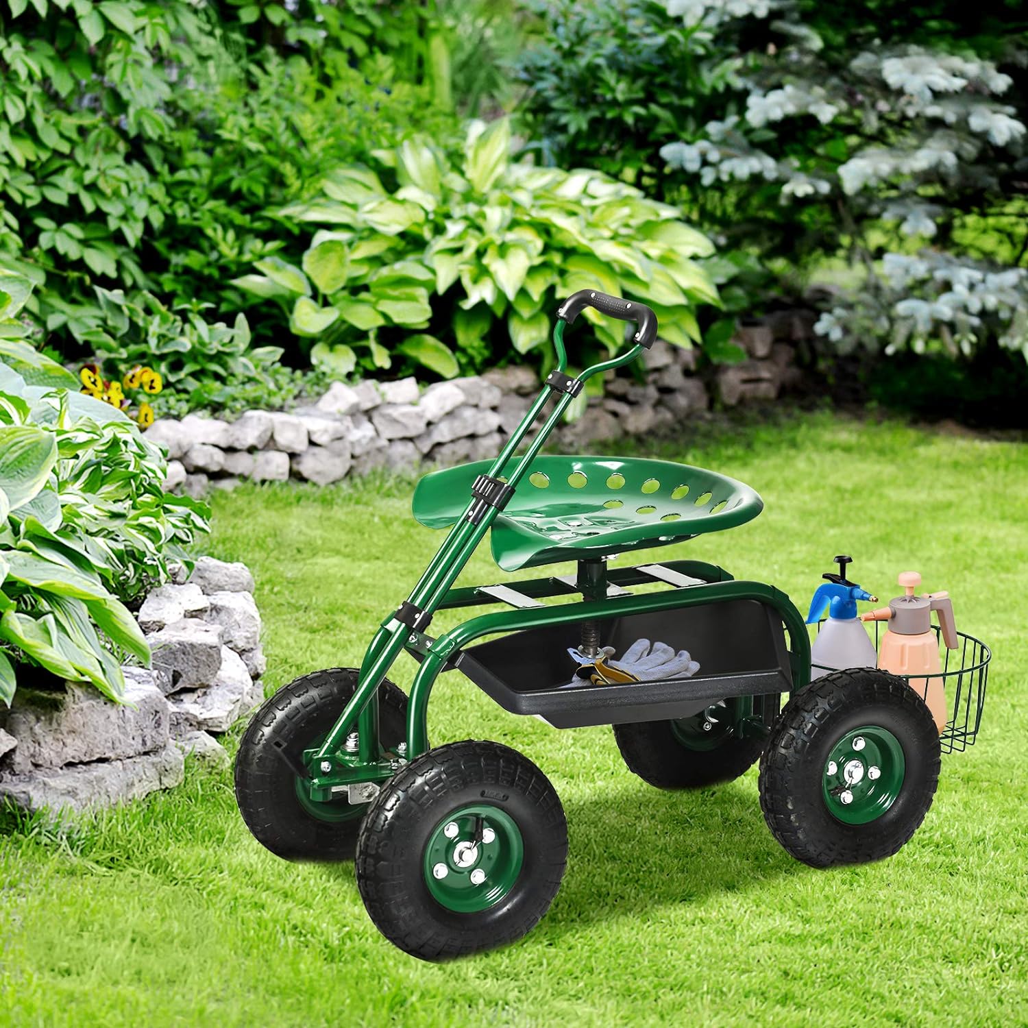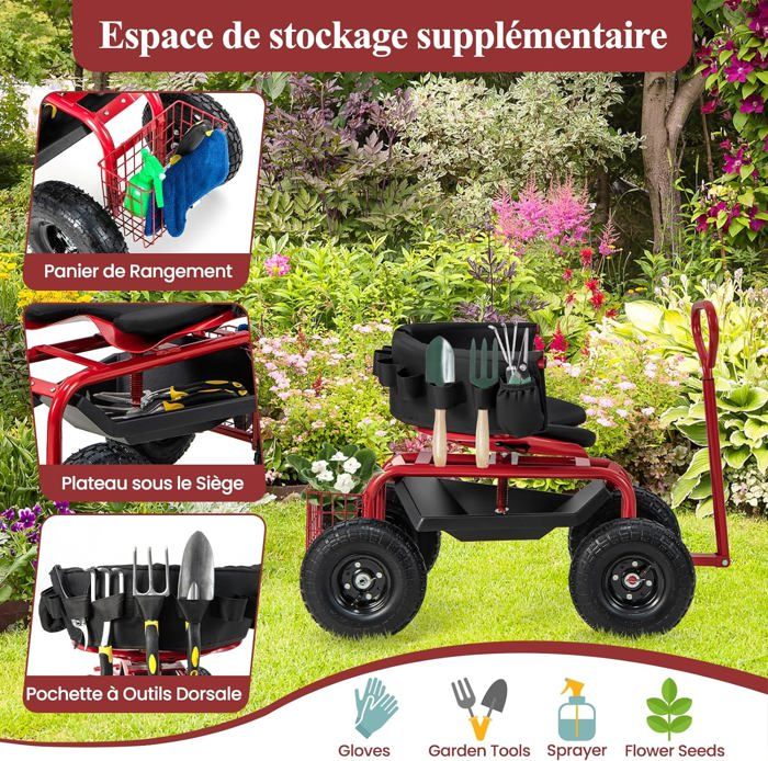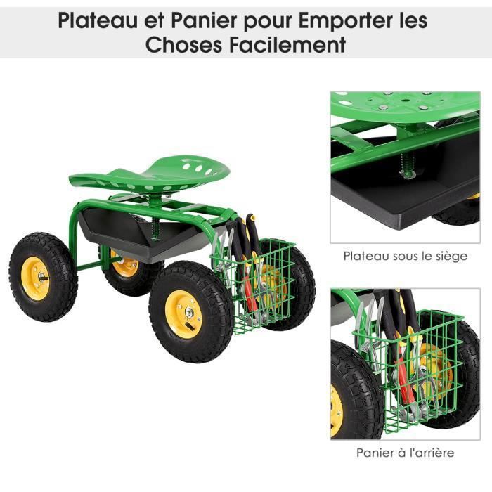 De plus, il est parfait pour le patio, la cour, le jardin et bien d'autres occasions pour améliorer vos projets extérieurs. Tabouret Jardin Réglable Hauteur Chariot De Jardinage Roulant COSTWAY-Siège Pivotant à 360°-Coussin Chariot Jardin Siège Roulant Description du produit : Ce chariot de jardin roulant avec son siège pivotant, est réglable en hauteur, vous permettant de passer facilement d'une tâche à l'autre et vous offrant un confort et une flexibilité inégalés. SIÈGE PIVOTANT RÉGLABLE☆Le siège peut être facilement ajusté à votre hauteur préférée pour un soutien optimal et réduire la tension sur votre corps. En outre... En outre, la conception pivotante à 360°vous permet d'effectuer facilement les tâches de jardinage, améliorant ainsi la productivité globale. ★CONSTRUCTION ROBUSTE★Fabriqué à partir de matériaux de haute qualité, ce tabouret de jardin roulant est conçu pour résister à une utilisation en extérieur, garantissant une durabilité durable pour vos besoins de jardinage. KADAX Siège roulant de jardin pour le jardinage avec étagère pratique - Siège de jardin mobile... ★SIÈGE PIVOTANT RÉGLABLE★Le siège peut être facilement ajusté à votre hauteur préférée pour un soutien optimal et réduire la tension sur votre corps. Comprenant un plateau de rangement et un panier, il garantit que vos outils et fournitures sont organisés et facilement accessibles. De plus, il a une capacité de poids de 150 kg pour plus de fiabilité. Costway Chariot De Jardin Roulant Siège De Travail Robuste Avec Siège Pivotant à 360 ° Et Hauteur Réglable 6d077b03848d47259239f71eeb9c0642 Fabriqué en métal, il est construit pour durer et les roues en caoutchouc de qualité facilitent les manœuvres sur différents terrains. ★UTILISATIONS POLYVALENTES★Du jardinage aux outils d'aménagement paysager et de transport, ce chariot de jardin roulant est polyvalent et adaptable à une large gamme d'applications.