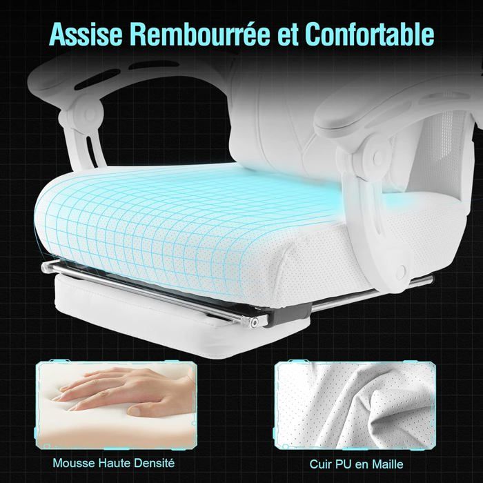 Chaise Ergonomique Gaming GTPLAYER Chaise De Gaming Ergonomique Avec Surface En Tissu, Coussin D Siège Gaming Montage et service : la chaise de maquillage est livrée avec toutes les pièces nécessaires et des instructions détaillées pour un montage facile en seulement 15 minutes. Si vous avez des problèmes avec la chaise de bureau, veuillez nous contacter directement Chaise Bureau Massage Lombaire GTPLAYER Chaise De Jeu, Chaise De Bureau, Ergonomique, Fauteuil De Jeu Chaise De Bureau Ergonomique Avec Repose Pied Veillez à ne pas dépasser le poids maximum de 150 kg pour assurer la stabilité et la sécurité de la chaise. Plusieurs réglages : réglage de la hauteur de 10 cm, dossier 90-150 ° avec verrouillage en continu, accoudoirs liés, rotation à 360 °, repose-pieds extensible. Chaise de bureau ergonomique LAMBO PRO, appui-tête, support lombaire... Utilisez le coussin lombaire et le repose-pieds avec précaution et assurez-vous qu'aucun objet ne pénètre dans les mécanismes. Stable et silencieuse : structure robuste et roulettes pivotantes silencieuses de haute qualité, charge maximale de 150 kg pour un maintien sûr lors de la rotation et de l'inclinaison. Montage rapide et dimensions : montage en environ 15 minutes avec instructions et outils. Matériaux de haute qualité : cuir PU résistant à l'abrasion ou tissu de qualité supérieure facile d'entretien, respirant, rembourrage indéformable, facile à nettoyer.