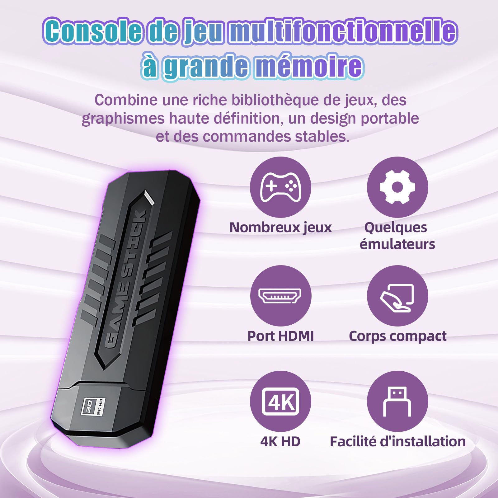 15000 jeux-M8 Pro Game Stick 4K 10000 jeux rétro, console de jeu vidéo Profitez de 30 000 jeux inclus, une sortie 4K ultra HD pour une expérience de jeu optimale. Compatible avec plusieurs émulateurs, cette console transforme votre... Console Rétro Portable 40000 Jeux HDMI 4K Game Stick X2 Plus Console De Jeu Vidéo 4K 40000 Jeux GD10 Plus Double Contrôleur Sans Fil Gamestick Jeux Rétro Consola Emulateur Console 4K HD bâton de jeu: sortie HDMI, peut se connecter à la télévision/moniteur/projecteur, est une console de jeu vidéo portable plug and play Des commandes stables et réactives vous permettent de jouer confortablement sur le canapé. X2 Plus 128G 40000 Jeux, Jeu Bâton Rétro Console de Jeu Vidéo 4K Jeux Bâton avec 2.4G Sans Fil Contrôleurs HD Sortie Jeu Machine Portable · € 50 · Ce qui se... Connectez simplement le bâton de jeu au port HDMI, branchez l'adaptateur secteur, et une fois que le téléviseur reconnaît le bâton de jeu rétro, vous pouvez commencer à jouer Profitez d'une expérience de jeu rétro immersive Il peut vous aider, vous et votre famille, à profiter de merveilleux temps de loisirs, vous permettant de créer des expériences de jeu et des souvenirs plus excitants Notre console de jeu rétro sans fil peut efficacement soulager le stress et améliorer votre sentiment de bonheur.