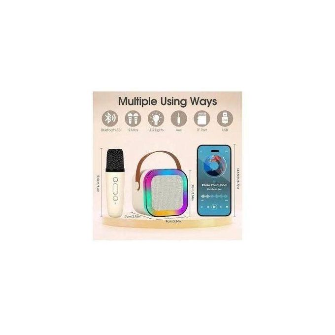 Mini Enceinte Portable K12 avec Micro Audio Intégré pour Karaoké Familial à Domicile, Haut-Parleur Bluetooth Sans Fil pour Extérieur avec Micros Mini Enceinte Chant Mini Machine De Karaoké K12 Avec Haut-Parleur Bluetooth Et Micro Mini Enceinte Bluetooth Portable Mini haut-parleur Bluetooth avec 1 microphone sans fil, Enceinte... Modèle: haut-parleur + microphone Apparence matériel: ABS Type de lecture: connexion compatible Bluetooth Distance réelle: 10 mètres Gamme de fréquences : 80 Hz - 20 kHz. Microphone Bluetooth sans fil pour karaoké, mini haut-parleur portable, lumière RVB, machine K12 Home KTV. 6,79€ - 8,79€. Couleur. Apricot with 2Mic. Blue with... Contenu : 1 haut-parleur karaoké sans fil., 1., Qualité audio professionnelle : faites l'expérience du son au niveau du studio avec cette combinaison de microphone de machine à karaoké portable qui offre des performances audio cristallines, parfait pour le karaoké, les soirées et plus encore., 2., Lumières LED vibrantes : ces haut-parleurs RVB multicolores augmentent votre plaisir musical avec cinq effets LED réglables synchronisés par la musique qui créent une expérience visuelle époustouflante, facilement contrôlés par une simple pression sur un bouton (appuyez brièvement pour allumer les lumières, appuyez longuement pendant 2 secondes pour éteindre)., 3., Stable Bluetooth compatible 5., 0 : avec une connexion Bluetooth 5., 0 avancée avec une portée de 32 pieds, ce jouet karaoké avec microphone sans fil assure une connexion stable à tous les appareils compatibles sans vous soucier des interruptions soudaines., 4., Amélioration de la voix intelligente : la puce AR quad-core intégrée dans ce mini microphone de haut-parleur home cinéma optimise votre expérience audio en améliorant la clarté de la voix, en éliminant les distorsions et les retours pour une session d'écoute immersive., 5., Interface conviviale : conçue pour la commodité à l'œil, cette petite enceinte affiche son statut avec des clignotements lumineux intuitifs pour le couplage, solide pour une connexion réussie, rouge pendant la charge et éteint lorsqu'il est complètement chargé avec des boutons de lecture simples commandes démarrez ou mettez en pause votre musique instantanément. Capacité de la batterie : 500 mAh - 800 mAh., Version Bluetooth : 5., 0., Microphone : 75 g., Audio : 410 g.
