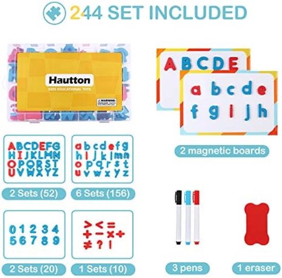 Set De Lettres Magnétiques ABC , 238 Pièces De Chiffres De L Alphabet En Mousse Mobiles Avec 2 Tableaux Magnetiques Double Face 3 Stylos Et Une Gum Kit D Aimants Alphabet Educatifs Pour L Apprentissage De L Orthographe Des Enfants Spécification: Nom de l'article: Lettres Magnétiques Matériel: Mousse Taille: 34,5 x 21,5 cm/ 13,6 x 8,5 pouces Emballer: 1 x Ensemble de Lettres de l'alphabet Magnétique en Mousse Cadeau éducatif Maternelle Lettres Magnétiques, Lettres De L'alphabet Magnétique En Mousse Lettre Magnetique Celine Alvarez C'est un cadeau parfait à partager pour les parents, les enseignants et les enfants, apportant un plaisir d'apprentissage sans fin. Idéal pour les enfants]ce kit de lettres magnétiques pour salle de classe contient 234 pièces, dont 156 lettres minuscules, 52 lettres majuscules... 90 lettres magnétiques colorées en mousse pour tous les usages! Idéal pour découvrir les lettres et écrire ses premiers mots. A utiliser sur le tableau... Les tout-petits peuvent sélectionner les bonnes lettres, former des mots et s'entraîner encore et encore en utilisant le marqueur pour ajouter de la ponctuation, ce qui rend l'apprentissage engageant et amusant. 【Idéal pour les enfants】ce kit de lettres magnétiques pour salle de classe contient 234 pièces, dont 156 lettres minuscules, 52 lettres majuscules, 40 cartes à jouer, 4 symboles, 2 stylos et 1 tableau noir. 【Rangement organisé】une boîte de rangement sécurisée avec compartiments est fournie pour apprendre aux enfants à rester organisés. Avec une pratique continue, les enfants peuvent maîtriser l’alphabet sans effort et améliorer considérablement leurs compétences en littératie., 2., Matériau en mousse souple et sûr - Fabriquées en mousse souple de haute qualité, les lettres réutilisables garantissent la sécurité des enfants pendant qu'ils jouent et apprennent. 【Pratique et facile à utiliser】soigneusement rangé dans une boîte spéciale, ce kit éducatif permet aux enfants d'apprendre facilement l'orthographe et l'écriture. Inspirez une créativité sans fin avec l'orthographe magnétique amusante des lettres anglaises pour l'éducation précoce!, Caractéristiques: 1., Combinaisons de lettres riches - L'ensemble comprend 234 lettres de l'alphabet magnétiques, offrant suffisamment de matériel pour que les enfants puissent épeler librement des mots, des phrases ou même des histoires courtes.