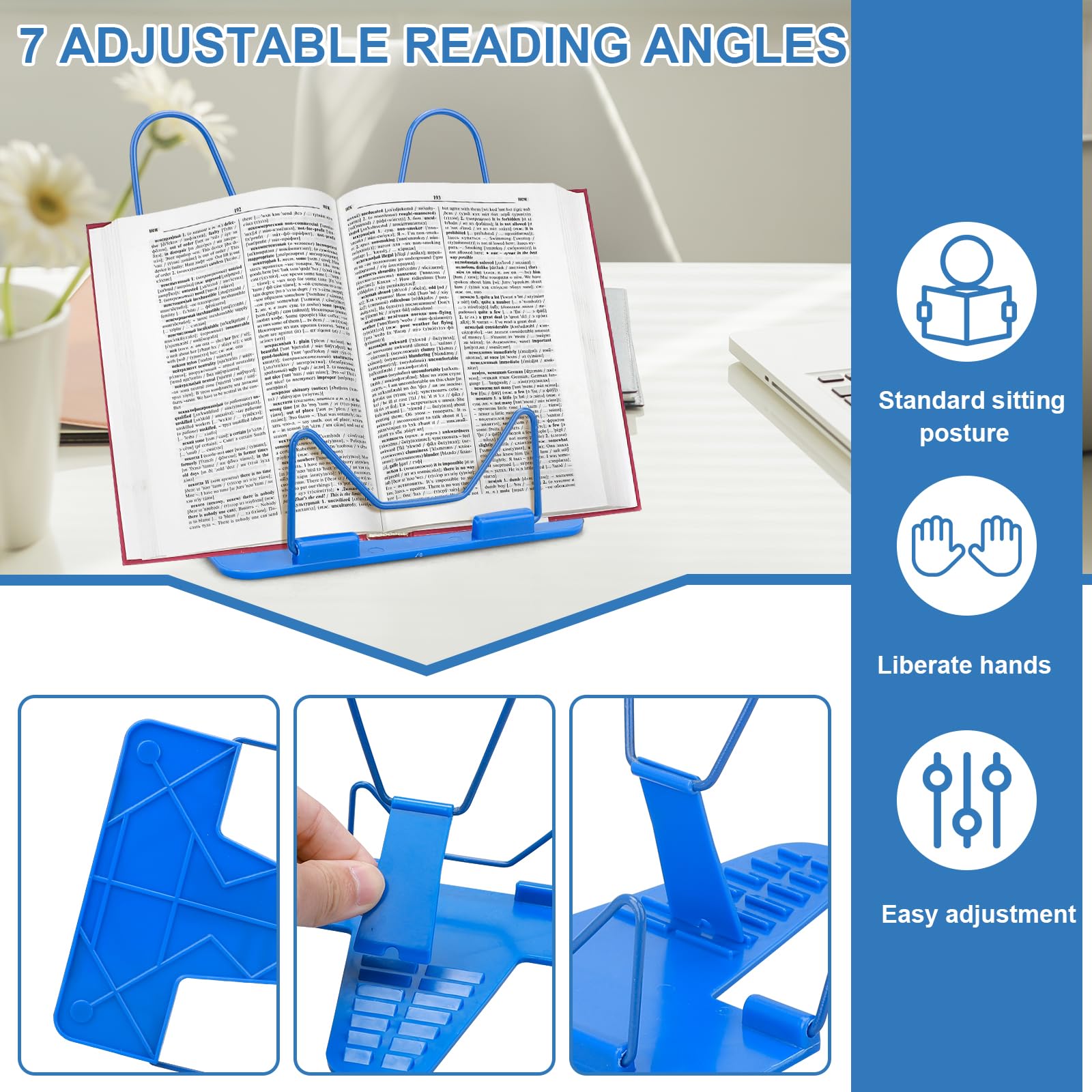📖【Pliable et Portable】Taille: 20 x 9 x 4 cm. Organisation polyvalente : gérez votre agenda en plein air avec notre bibliothèque multifonction qui est équipée d'un bloc-notes pour enregistrer des tâches et... 📖【Non-Glissement et Stable】Le support résistant de notre cas multifonctionnel est conçu avec une structure de support triangulaire et un coussin en caoutchouc non glissé en bas pour une plus grande stabilité. Vous pouvez facilement choisir l'angle de lecture le plus confortable et réduire le cou et protéger la vision. Accessoire Ergonomique écolier Support De Lecture,Trousse Multifonctionnelle 2-en-1, Porte Support De Livre Réglable Idéal pour le bureau, la maison, la bibliothèque, l'école, le dortoir, etc. 🔍 Spécification du produit: Nom du produit: Stand de livres Matériel: Plastique Taille: 20 x 9 x 4 cm Couleur: bleu Quantité: 1 ⭐ Fonctions: ✔ Vous pouvez choisir l'angle de vision parfait pour libérer vos mains pour éviter les douleurs au poignet, le cou et les tensions d'épaule, les maux de tête et la fatigue oculaire causés par la lecture. Sans prendre beaucoup de place lorsqu'il n'est pas utilisé. 📖【Caractéristiques Polyvalentes】Le livre du livre est équipé de lattes abandonnées des deux côtés, permettant aux utilisateurs d'enregistrer des notes, des calculs et plus encore à tout moment. 📖【Grand Cadeau】Le livre de livres pour enfants réglable comprend également de jolis autocollants avec lesquels vous pouvez concevoir votre étagère vous-même à tout moment et n'importe où pour inspirer vos enfants à lire. 📖【Avec 7 Angles de Lecture Différents】Le support de lecture peut être plié entre 0 et 70 degrés et ajusté pour sept angles de lecture. Parfait pour placer l'iPad, les calendriers, les catalogues, les scores, les manuels, etc. Une touche design pour votre intérieur Laissez-vous séduire par nos supports de livre qui allient design et praticité. Un véritable atout déco, chaque support est sélectionné pour son esthétique unique qui s'harmonise avec les styles d'intérieurs contemporains ou traditionnels. La qualité au coeur de notre collection Nous accordons une importance particulière à la qualité de... comme étagère pour la lecture. Développe des habitudes de lecture bonnes et saines. powerking Porte - documents porte - papier avec 7 positions réglables