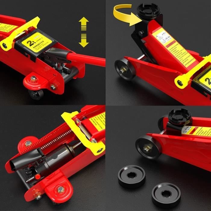 Verin Hydraulique Cric Hydraulique, 3 Tonnes, Hauteur De Levage Plat 75-505 Mm, Avec 2 Patins En Caoutchouc, Lève-Voiture Professionnel, Roues 360°, Cadre Porteur (Vert Cric Hydraulique 2t Cric hydraulique capacité 2 tonnes avec valise et patins en caoutchouc inclus levée de 85 à 330mm cric de levage voiture véhicules 157 73,99€ Livraison gratuite Cric roulant hydraulique 2T - Pro Lift F2000B - Outils Pro L'acier robuste et les soudures garantissent une longue durée de vie, même en cas d'utilisation intensive. Hauteur de travail minimale : 90 mm. Hauteur de travail maximale : 340 mm. Charge maximale : 2 000 kg. Marque : Högert Technik; Fabricant : Högert Technik... Son poids léger, ses dimensions et sa poignée de transport le rendent idéal pour être transporté, par exemple dans le coffre d'une voiture. Grâce à sa construction robuste et à son vérin hydraulique haute performance, le cric soulève le véhicule sans effort et rapidement, sans risque de descente involontaire. Une soupape de surcharge intégrée protège contre le dépassement de la capacité de charge maximale et prolonge la durée de vie de l'appareil. Le cric hydraulique portable et compact à profil bas permet de soulever des charges allant jusqu'à 2 tonnes à une hauteur de 340 mm.