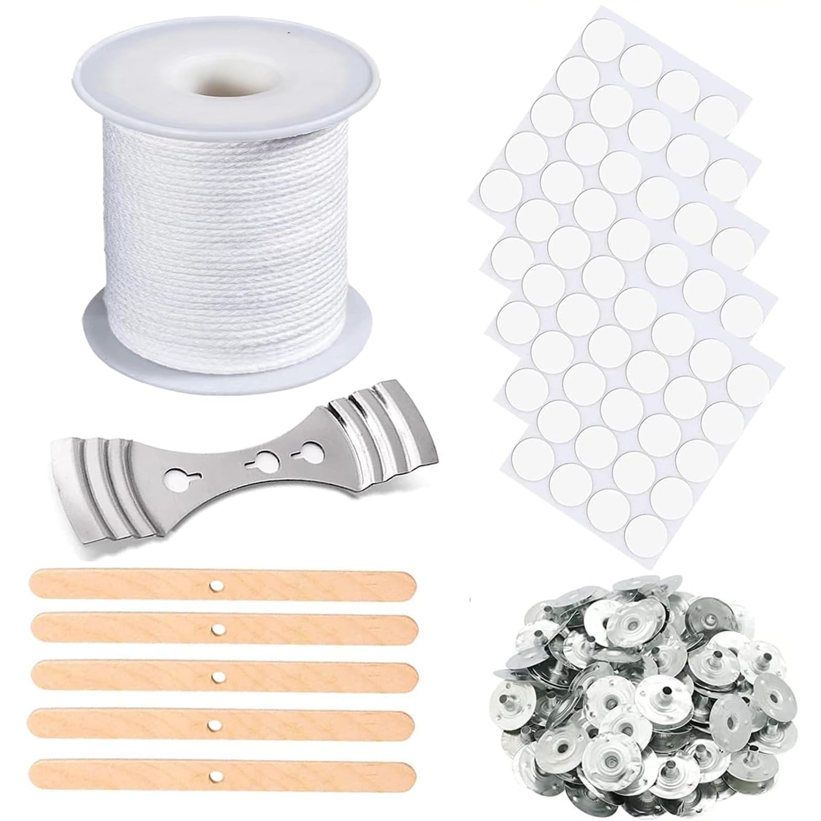 Cire A Bougie Rouleau De Mèche De Bougie Tressé En Coton De 61 M Avec 100 Languettes Métalliques, 100 Autocollants Pour Mèche De Bougie Et 6 Dispositifs De Centrage De Mèche De Bougie Pour La Bougie Woodwick 1 Rouleau Mèches De Bougie,61M Mèche En Coton Tressée,Meche De Lampe... 61m Mèche de Bougie en Coton, Mèches pour Bougies, Fil pour Mèche Il n'y a pas de fumée noire et les bougies brûlent de manière stable, leur durée de combustion est plus longue (la mèche de bougie peut être préalablement trempée dans de l'huile pour garantir une combustion complète) Mèche Tressée Plate Bougie Meche Cire Bougie 1 Rouleau 200 Bougie Mèche... 【Large gamme d'applications】Ce kit de mèche pour bougie permet de fabriquer différents types de bougies, telles que des bougies chauffe-plat, des bougies parfumées, des coffrets cadeaux, des bougies de fête, des bougies en cire d'abeille et bien plus encore ! 【Mèches bougie en matériau de haute qualité】Nos meche bougie sont en coton naturel. La cire brûle sans dégager de mauvaise odeur. 【Kit de meche bougie DIY】Contient un rouleau de mèche bougie 61 m de long, 100 autocollants pour mèches, 100 supports métalliques, 1 paire de ciseaux à mèches et 5 dispositifs de centrage en bois