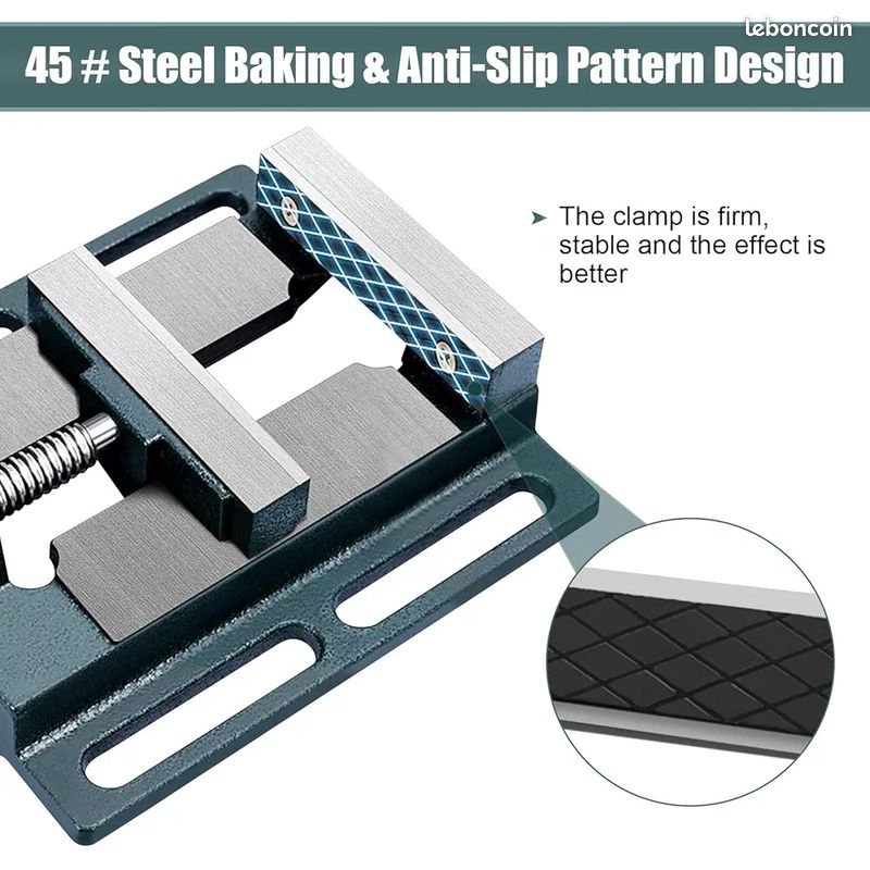 Facile à installer et à utiliser : la base fendue et la structure simple garantissent un montage et un positionnement solides sur tous les types de perceuses et le rendent idéal pour les tâches légères. Accessoire Bricolage Professionnel Étau Pour Perceuse à Colonne VEVOR Ouverture De Mâchoire 110 Mm Étau De étau Atelier Fonte Acier Détails : Vis en plomb : permet un réglage facile de l'étau de perceuse, ce qui facilite grandement votre travail. Cet étau de haute qualité est l'outil de fixation idéal et représente donc une aide indispensable dans chaque atelier Largeur de mâchoire : 9,9 cm / 4 Hauteur des mâchoires : 2 cm / 3/4 Distance entre les fentes d'installation : 13,5 cm / 5,3 pouces Diamètre de la tige de vis : 1,3 cm. Dimensions du colis : 21 x 18 x 6 cm., Poids net : 2 kg., Poids brut : 2,2 kg. Cette table de travail pour fraiseuse était adaptée à tous les supports de forage, perceuses et fraiseuses et compatible avec tous les types de positionnement... Charge maximale : Zone de serrage : 10 cm. Utilisation : Il s'applique au traitement de précision de différentes formes de bois, métal, plastique et autres pièces de précision. Finition exquise : l'étau de machine Le traitement de rotation et le procédé de pulvérisation électrostatique augmentent la dureté et la ténacité des mâchoires, rendent ce produit agréable au toucher, améliorent la précision des surfaces de contact de la machine-outil. Étau Pour Perceuse à Colonne 4" 100mm Pilier Banc Perceuse Étau Pour L'Entretien Des Machines De Fraisage Datelier 76795444 Caractéristiques techniques : Couleur : bleu. Haute stabilité : la texture antidérapante à l'intérieur des mâchoires augmente la morsure des mâchoires de l'étau, assure un serrage solide sans glissement et fixe fermement la pièce à travailler en place pour obtenir un perçage sûr et précis.