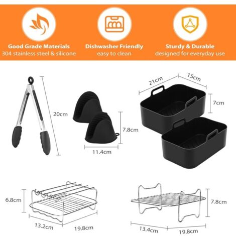 Crispy Ninja Convient Pour Les Accessoires De Machine Ninja Crispi Air Silicone Friteuse Air Fryer Pots En Silicone Réutilisable Doublure En Silicone Haute SEPT-Convient pour les accessoires Ninja Crispy Air yer - Coussinets chauds en silicone - Filet de protection anti-éclaboussures en silicone - 2... Vous n'avez pas à vous soucier que le transfert de chaleur soit entravé ou que le croustillant soit affecté Le design portable de la friteuse à air chaud Ninja est équipé de deux poignées qui protègent efficacement vos mains contre les brûlures causées par les températures élevées Le design antidérapant garantit que le tapis en silicone adhère fermement au plan de travail et ne glisse pas ou ne tombe pas Filet anti-éclaboussures : ce couvercle anti-éclaboussures en silicone a été spécialement conçu pour la friteuse à air chaud Ninja FN101., Il empêche efficacement les éclaboussures d'huile pendant le processus de friture, de sorte que vous n'avez plus besoin de nettoyer les éléments chauffants. Matériau sûr et durable : spécialement conçu pour le Ninja FN101, fabriqué en matériau durable et résistant à la chaleur, réutilisable, ne se déforme pas, ne se fissure pas et ne libère pas de gaz nocifs. Facile à nettoyer et passe au lave-vaisselle : le motif unique évacue l'huile et les résidus, le revêtement antiadhésif est facile à essuyer avec un chiffon humide ou au lave-vaisselle. Accessoire en silicone pour friteuse à air chaud ninja Doublure silicone réutilisable pour friteuse à air. - Test et Avis...