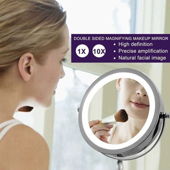 ③ Chargez complètement avant la première utilisation. Miroir Lumière Réglable 10X 1X Auxmir Miroir De Maquillage De Voyage Avec Lumière, Grossissement 1x Miroir Grossissant Lumineux Sur Pied Miroir Grossissant Double Face 10X/1X — Doté d'une magnification 10X pour les travaux de précision sur le visage (comme la pose de cils, l'extraction de points noirs, l'épilation des sourcils., ., ., ) et d'un miroir standard 1X pour le maquillage complet et les soins quotidiens de la peau. Ce miroir lumineux mural est un cadeau idéal pour votre mère, sœur, épouse, petite amie ou maquilleuse pour la Saint-Valentin, la fête des mères, Noël, un anniversaire ou d'autres occasions spéciales Lumière Dimmable en 3 Couleurs — Trois couleurs d'éclairage (froide, naturelle, chaude). Fonction arrêt automatique après 45 minutes et fonction mémoire de la luminosité. LaBlanc - Miroir grossissant 30x avec lumière, Grand Miroir 15cm 3... Design pliable portable, idéal pour le rangement et les voyages. VEUILLEZ NOTER : La distance de visualisation doit être de 10 à 13 cm (4-5 pouces) lors de l'utilisation du côté 10X pour éviter une image inversée, floue ou déformée. ② Le miroir 10X est concave et nécessite une distance de moins de 13 cm (5 pouces) du visage pour une focalisation optimale. Miroir Grossissant 10x LED Beautural Miroir Maquillage Grossissant 10x Avec LED - Ventouse 360° - Portable Pour Voyage Et Salle De Bain Miroir Cosmétique Portable Rotation 360° et Pliabilité pour une Utilisation Nomade — Changement facile entre les côtés 1X et 10X. Ajustez la distance si l'image est déformée — c'est normal.
