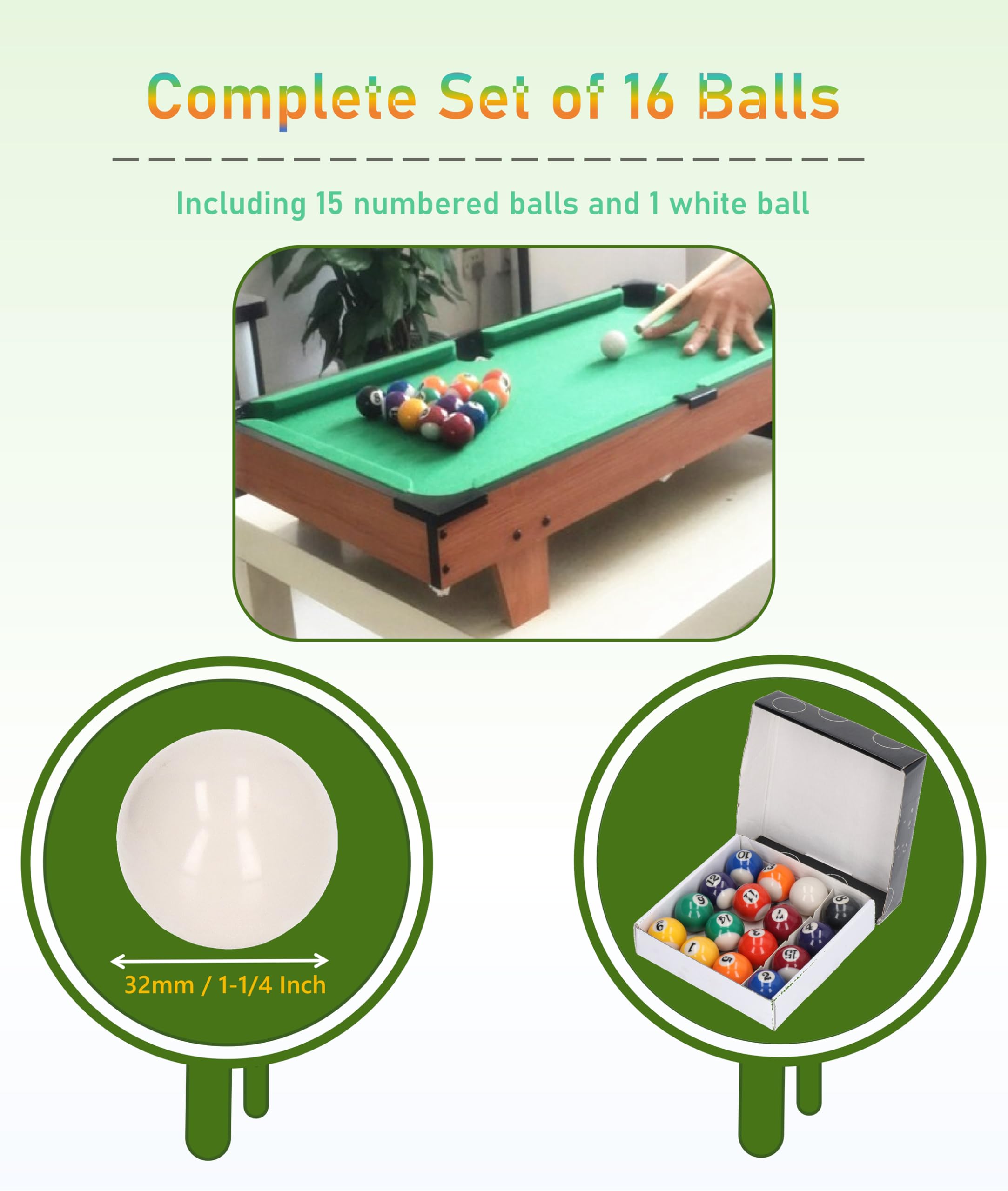 Billard Billard Ensemble. Collection De Boules De Snooker Réaliste Vectoriel Avec Des Nombres Sur Fond Transparent 308616873 Boules Billard Ensemble,2-1-4 Règlement Dimension Complet 16 Boules Billard Professionnelles... Boules Billard Compatible Queue TOYANDONA 16pièces Lot De Mini- De Billard Jeu Exercice Pour Garçon Boules De Billard Pour Enfants Liste des packages 16 boules de billard pour enfantsCaractéristiques -Facile à transporter : leur taille compacte rend ces boules faciles à transporter, afin que les enfants puissent profiter du billard partout où ils vont. Boules de billard en résine Elles sont idéales pour le jeu récréatif et peuvent être utilisées sur des mini tables de billard, ce qui en fait un choix polyvalent pour le divertissement en intérieur. Dessin animé vectoriel illustration boules de billard craie et icône de sport de queue de... Accessoires de table de billard -Conception engageante : la conception américaine ajoute un élément d'excitation au jeu, le rendant plus attrayant pour les jeunes joueurs boules de billard en résine - Longue durée : fabriquées à partir de matériaux durables, ces boules sont conçues pour durer, garantissant qu'elles restent en bon état même avec une utilisation fréquente des accessoires de table de billard -Taille : 2,50 x 2,50 x 2,50 cm/0,98 x 0,98 x 0,98 pouces mini boules de billard -Couleur : Boules de billard multi-exercicesDescription des marchandises Boules de billard récréatives L'ensemble de boules de billard miniatures est un ajout à la salle de jeux ou à l'aire de jeux de tout enfant. Boules de billard pour enfants Avec leurs couleurs et leur finition lisse, ces boules sont visuellement attrayantes et ressemblent à des boules de billard standard Spécial enfants : conçues spécifiquement pour les enfants, ces mini boules de billard aident les enfants à développer leurs compétences et leur concentration tout en s'amusant, boules de billard à pare-chocs, mini boules de billard en résine Durable et lisse : les boules ont une surface lisse et sont conçues pour être durables, garantissant qu'elles peuvent résister à une utilisation à long terme sans dommage, mini boules de billard, de boule de billard pour enfants