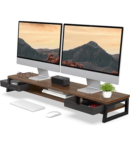 Support de moniteur | Support d'écran chêne sonoma 54x22x15 cm bois d Apportez une touche d'élégance et de fonctionnalité à votre espace de travail avec notre support de moniteur Harmony. Méticuleusement conçu pour répondre à vos besoins, ce support est parfait pour élever et organiser jusqu'à deux moniteurs de manière sûre et élégante Support Moniteur Phoenix Harmony Support De Moniteur Harmony En Bois Noir Phoenix Support Ecran Bois Harmony est fabriqué en bois stratifié de haute qualité et de 18 mm d'épaisseur, ce qui lui confère un aspect sophistiqué et durable. La combinaison du bois stratifié et des détails de finition tels que ses bords soigneusement profilés à la main lui confèrent un look moderne et stylisé, qui s'adaptera parfaitement à n'importe quel environnement de travail, que ce soit dans un bureau à domicile, un studio de design ou une salle de conférence. Support de moniteur | Support d'écran avec tiroirs vieux bois bois d... La polyvalence d'Harmony vous permet de l'utiliser avec jusqu'à deux moniteurs, vous offrant une solution complète pour votre configuration à double écran ou un seul moniteur jusqu'à 34 ultra panoramique. Il améliore non seulement l'organisation et l'apparence de votre espace, mais il optimise également la productivité de l'environnement qui vous entoure et crée une atmosphère inspirante et calme pour votre quotidien. Conçu méticuleusement pour répondre à vos besoins, ce rehausseur est parfait pour soulever et organiser jusqu'à deux moniteurs en toute sécurité et élégamment. Ajoutez une touche d'élégance et de fonctionnalité à votre espace de travail avec notre moniteur Harmony.