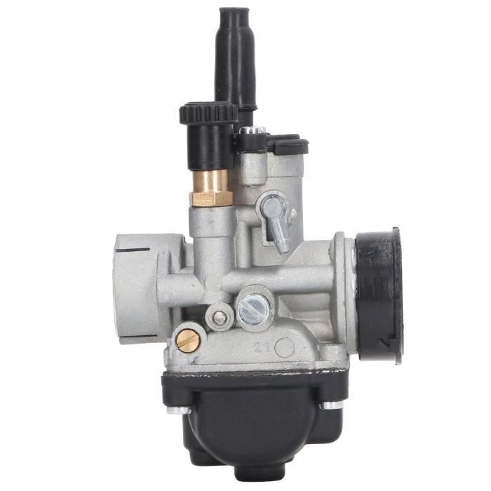 Carburateur 21MM, 21MM Carburateur Moto Carb Universel pour 2 Temps 50 Kit starter à câble DELLORTO PHBG Dellorto 17.5mm Carburateur Moto Carburateur De Moto PHBG Avec Filtre À Air Pour Puch Kit Carbu Filtre à Air Moto 50cc Installation facile : Ce carburateur est facile à installer. Mécanisme de starter de type levage et rotation installéJet standard :30 diapositivesaiguille W682 Gicleur principalAtomiseur 262AN55 Gicleur de ralenti55 Choke jet9450., 2 Flotteur – 5,0 grammesPHBG 19., 5AS 4T :Raccord d'admission d'air fileté M32 x 1,25., Raccord de moteur de type pince pour s'adapter à un embout de 24 à 26 mm. Filtre à air de compétition Malossi aluminium | Carburateur Dell'Orto... DescriptionÉlément de rapportPHBG 17., 5AS 4T :Raccord d'admission d'air fileté M32 x 1,25., Raccord de moteur de type pince pour s'adapter à un embout de 24 à 26 mm. Mécanisme de starter de type levage et rotation installéJet standard :30 diapositivesaiguille W688 Gicleur principalAtomiseur 262AN55 Gicleur de ralenti55 Choke jet9450., 2 Flotteur – 5,0 grammesCompatible avec les moteurs de 50 à 100 cm3Type de matériau : aluminiumEmballer:1 x carburateur de moto1 x filtre à airRemarque : Avant de commander, veuillez vérifier que le produit correspond à votre modèle. Nos carburateurs sont robustes et pratiquement sans entretien, vous permettant de vous concentrer sur des performances fiables. Fabriqué en aluminium, durable, résistant à l'usure et facile à utiliser.