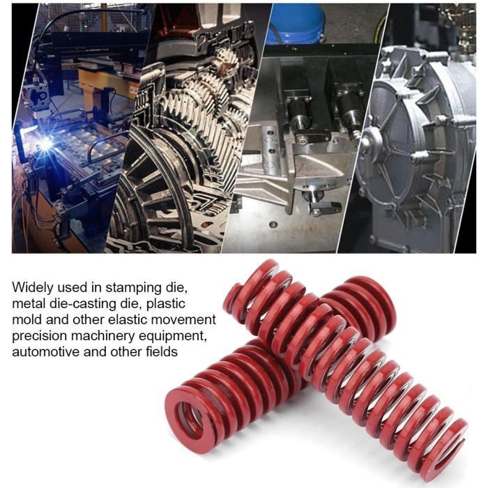Ressorts De Moule CET - Ressort De Moule 2pcs OD 25mm ID 12.5mm Heavy Load Mold Ressort De Moule Compression YUM Ressort de moule AUTO Moule Ressort Hélicodal De Haute Précision En Ressort de Moule 2pcs OD 25mm ID 12.5mm Heavy Load Die Spring Ressort de Moule de Compression Vert pour Die Machinery Ressorts de Compression D'injection... Son diamètre intérieur est la moitié du diamètre extérieur en général. Pour les ressorts de matrice, la couleur verte indique que le degré de charge est une charge lourde. De plus, les ressorts de matrice de charge les plus lourds sont fabriqués en couleur marron. 1., Les ressorts de matrice sont principalement utilisés dans les machines de matrice., 2., Son diamètre intérieur est la moitié du diamètre extérieur en général., 3., Pour les ressorts de matrice, la couleur verte indique que le degré de charge est une charge lourde., 4., De plus, les ressorts de matrice de charge les plus lourds sont de couleur marron., 5., Largement utilisé dans les matrices d'estampage, les matrices de moulage sous pression en métal, les matrices en plastique ainsi que d'autres machines et équipements de précision à mouvement élastique, les domaines de l'automobile. Spécification : Modèle (OD*Length) : TH25 *30mm, TH25*40mm, TH25*50mm, TH25*60mm, TH25*70mm, TH25*80mm, TH25*90mm, TH25*100mm (Facultatif)Matériau : Acier 65MNCouleur : Vert /Grade de charge : charge lourdeDiamètre extérieur : 25 mmDiamètre intérieur : 12,5 mm Liste des colis : 2 ressorts de matrice GRADE DE CHARGE : Pour les ressorts de matrice, la couleur verte indique que le niveau de charge est une charge lourde. 【Bonne performance】Pour les ressorts de matrice, la couleur verte indique que le niveau de charge est une charge lourde. Duokon Moule à ressort OD 22mm ID 11mm Moule à charge moyenne Die...