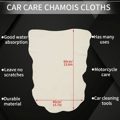 *Matériau : cuir de chamois. Peau chamois synthétique pour auto voiture - Achat / Vente eponge Contrairement aux serviettes en microfibre ordinaires, ce chiffon en cuir ne laisse pas de peluches ni derrière, donnant à votre voiture, fenêtres ou miroirs une brillance impeccable et professionnelle. Peau Chamois 40x60 Cm Serviette De Nettoyage En Peau De Chamois Naturelle Pour Voiture Chiffon De Nettoyage Chamois *Forme : forme irrégulière. Couleur : conforme à l'image., * Dimensions : 60 x 40 cm. Taille personnalisable : le chiffon de nettoyage en peau de chamois est disponible en plusieurs tailles, vous permettant de choisir celui qui convient à vos besoins. Que vous ayez besoin d'une taille plus petite pour un nettoyage précis ou d'une taille plus grande pour des tâches plus étendues, il y a une option disponible pour vous Performance durable : fabriqué en peau de chamois de qualité supérieure, ce chiffon de nettoyage conserve sa douceur et sa fonctionnalité grâce à une utilisation répétée. Matériau super absorbant : notre serviette en peau de chamois dispose d'une capacité d'absorption d'eau exceptionnelle, vous permettant de sécher de grandes surfaces avec un minimum d'effort. Tout neuf et de haute qualité * et pas facile à déformer * Forte absorption d'eau et résistant à l'usure *Convient pour nettoyer les voitures, les battants... Cette serviette de haute qualité de 40 x 60 cm absorbe l'eau comme une éponge, ce qui rend le lavage de voiture plus rapide et plus efficace. Chiffon en peau de chamois de qualité supérieure : profitez d'une absorption supérieure avec notre chiffon de nettoyage en peau de chamois conçu pour sécher rapidement votre véhicule sans laisser de traces ou de taches d'eau. # Nettoyage sans traces : la texture douce de notre peau de chamois assure une finition sans rayures sur toutes les surfaces. Détails de l'article : * *Fabriqué avec des matériaux de haute qualité, et pratique Ne se déforme pas facilement. Utilisation polyvalente : convient à de multiples fins de nettoyage, y compris les voitures, les fenêtres, les téléphones portables, les appareils photo, les miroirs, les lunettes, les montres et les bijoux.