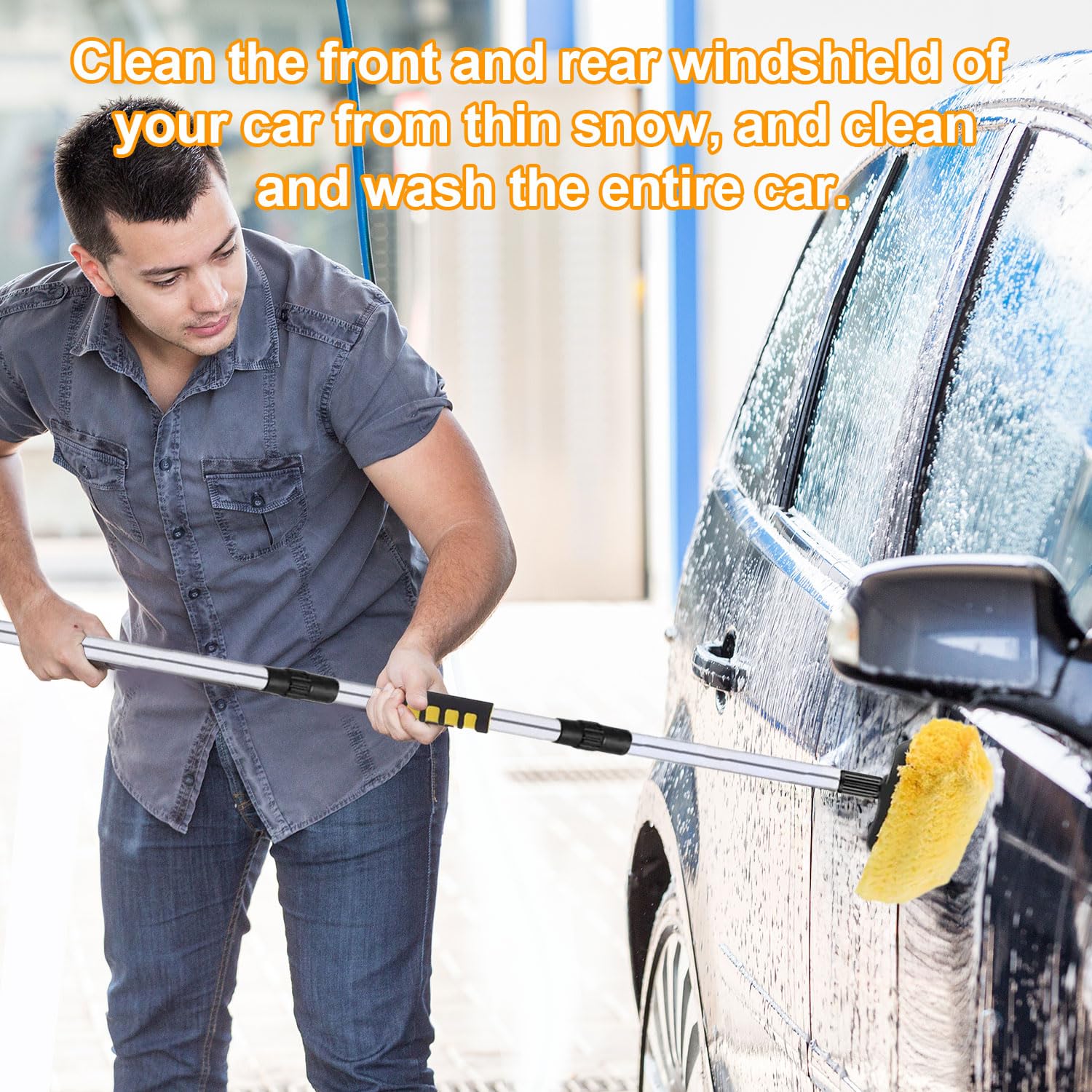Akozon Brosse De Plumeau De Voiture Brosse à Plumeau Ergonomique... DOUCEUR : La brosse et le gant de lavage sont dotés de poils doux et délicats qui ne laissent pas de traces et ne rayent pas votre voiture. De plus, ils sont légers, ce qui les rend particulièrement faciles à utiliser. Manche Aluminium Lavage Auto Brosse Telescopique De Nettoyage Voiture, Amovible Brosse Tete De Loup Telescopique 6m CONCEPTION AVANCÉE : Avec un adaptateur pour les raccords de tuyaux et un interrupteur d'arrêt d'eau, la combinaison des poils doux et du débit d'eau permet d'éliminer les saletés particulièrement tenaces. DOUCEUR : La brosse et le gant de lavage sont dotés de poils doux et délicats qui ne laissent pas de traces et ne rayent pas votre voiture. De plus, ils sont légers, ce qui les rend particulièrement faciles à utiliser Description du produit : 1., Le manche s'étend de 47 cm à 120 cm, ce qui facilite le nettoyage de votre voiture., 2., Chaque section de la tige de la brosse de lavage est conçue avec un connecteur fileté, ce qui permet de l'attacher et de la détacher facilement en tournant le filetage., 3., La brosse à poils souples peut également être combinée à un jet d'eau, ce qui la rend adaptée au nettoyage des voitures, des camions, des motos, des bateaux et des bus. Balai-brosse télescopique - SILVERLINE - Nettoyage extérieur - Raccord