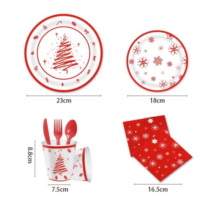 - Cette vaisselle en papier épais est suffisamment solide pour contenir une assiette pleine. Spécifications : Matériau : papier Gobelet en carton : 270 ml Assiette plate : 23 cm Assiette à salade : 18 cm Nappe : 132 cm x 218 cm Serviettes : 16 cm x 16 cm Conseils : - En raison des différences de méthodes de mesure manuelles, de luminosité et de réglage de l'écran, une légère marge d'erreur est possible. [Haute qualité] Fabriqué en papier de qualité alimentaire, 100 % sans danger pour les aliments, non toxique et sans BPA, sûr à utiliser, ne se déchire pas et ne se casse pas, biodégradable, parfait pour une fête sur le thème de Noël respectueuse de l'environnement Profitez des fêtes en famille et entre amis ! Kit Vaisselle Jetable Noel LATERN 114 Pièces Vaisselle De Fête En - 25 pièces de chaque type de vaisselle, pour 25 invités, créeront une ambiance de Noël joyeuse., Accueil. il est idéal pour les fêtes de Noël, les fêtes hivernales féeriques, les fêtes de famille sur le thème de l'hiver, etc. papier 100 % recyclable et de haute qualité. Contenu de l'emballage : 25 x assiettes plates de 23 cm 25 x assiettes à salade de 18 cm 25 x gobelets de 270 ml 25... [Taille] Gobelet en papier : 270 ml, diamètre de l'assiette : 23 cm, diamètre de l'assiette à salade : 18 cm, serviette : 16 cm x 16 cm, peut répondre aux besoins de 25 invités pour le dîner de fête de Noël LATERN 102 Pièces Ensemble de vaisselle en papier pour fête de Noël avec son design unique et élégant de couronne de feuilles de houx et ses motifs de Noël : « Joyeux Noël », flocon de neige, cloche, élan, etc. - Tous les articles sont fabriqués à partir de papier 100 % recyclable et de haute qualité. Vaisselle Biodégradable Pour 25 Invités LATERN 100 Pièces Vaisselle En Papier Pour Fête De Noël, 25 X 23CM Assiettes à Plates, 25 X 18CM Assiettes à Salade, 25 X 270ml Gobelets, 25 X 16CM Serviettes - Pour Vaisselle Jetable Noël HC30 - YE - Assiette plate 16cm Zèbre - Mono party · HC30 - YE - Coffret 2 assiettes 26 et 16cm Girafe - Mono party · HC30 - YE - Coffret 4 assiettes 16cm... [Facile à utiliser] Ces couverts en papier épais sont suffisamment solides pour contenir une assiette pleine de nourriture ; et n'ont pas besoin d'être nettoyés, il suffit de les jeter sans aucune pollution environnementale