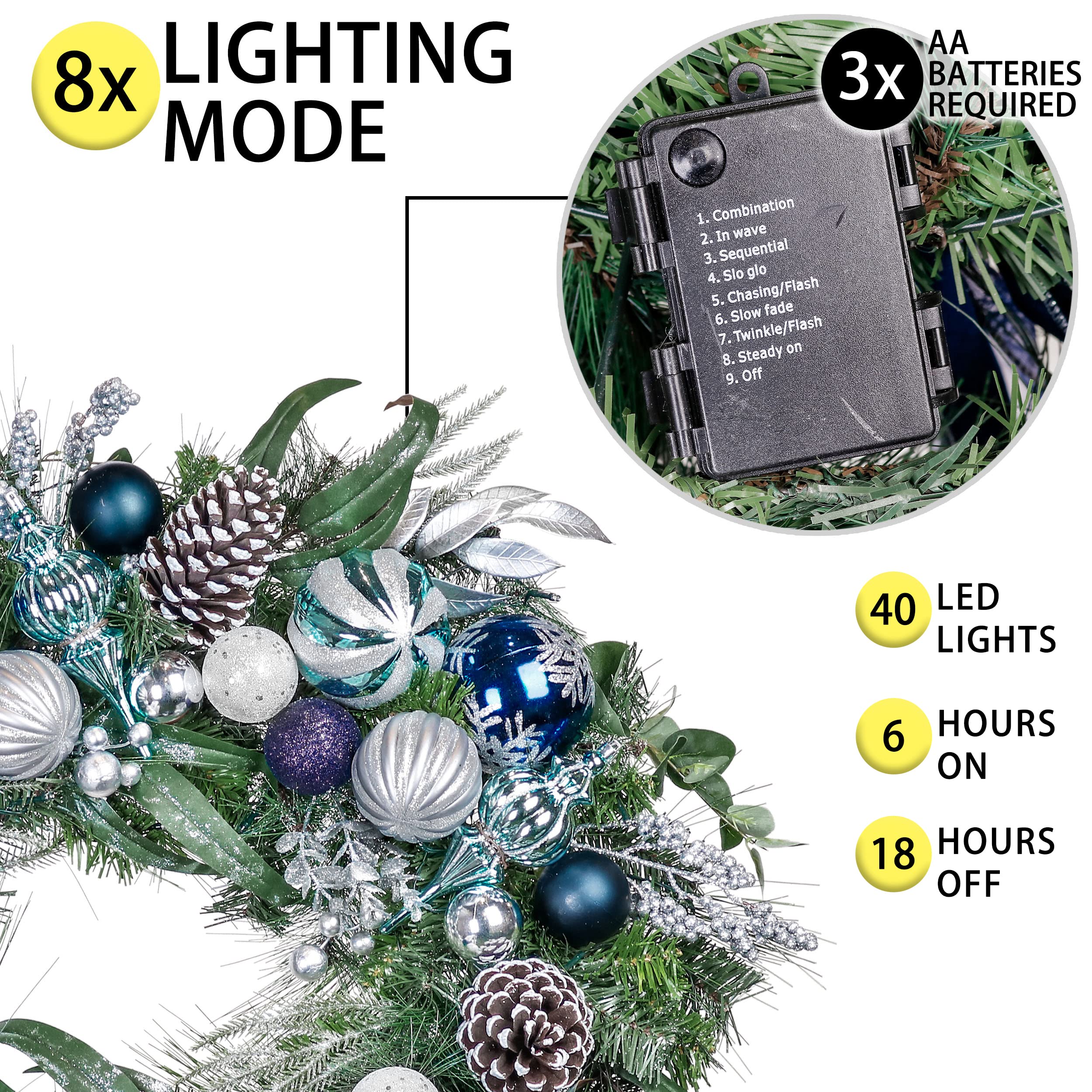 Couronne De Noël Valery Madelyn De 76,2 Cm Pour Décoration De Noël Intérieure Ou Extérieure, Couronnes De Noël Pré-éclairées Avec Boules Dorées Blanches Pour Escaliers, Porte D'entrée, Fenêtre Guirlande LED Couronne Valery Madelyn Couronne de Noël pré-éclairée de 61 cm pour Vous allez adorer Valery Madelyn Couronne de Noël pré-éclairée de 20 pouces pour la porte d'entrée avec lumières, élégante couronne de la Saint-Valentin avec boules de Noël or champagne pour centre de table, décoration de fête de mariage sur Canada. Profitez de rabais sur tous les articles de avec livraison gratuite sur pratiquement tout 【Très Complet】 Cette couronne de Noël de 46 cm est pleine de boules de Noël, de feuilles d'or et d'autres éléments riches, créant une scène élégante et apportant une atmosphère festive. Cette couronne conservera ses couleurs d'origine et son aspect réaliste pendant des années. Remarque : pour un meilleur affichage, veuillez étirer la couronne lors du déballage. cime de sapin noel 【Lumière LED à piles】 Cette guirlande de lumières est allumée pendant 6 heures, éteinte 18 heures, s'allume automatiquement tous les jours et est dimmable avec 8 effets lumineux. 3 piles AA requises (non incluses) 【Application】Cette belle couronne de Noël mesure environ 46 cm de long, parfaite pour l'intérieur, l'extérieur, la porte, le mur, la cheminée, la fenêtre ou au-dessus de la cheminée à ajouter à vos décorations de Noël et serait un cadeau de Noël parfait pour votre famille et vos amis Pour embellir un centre de table, en guise de déco murale, ou suspendue à la porte d'entrée pour épater les invités, la couronne de Noël à réaliser soi-même ou toute faite donne le ton