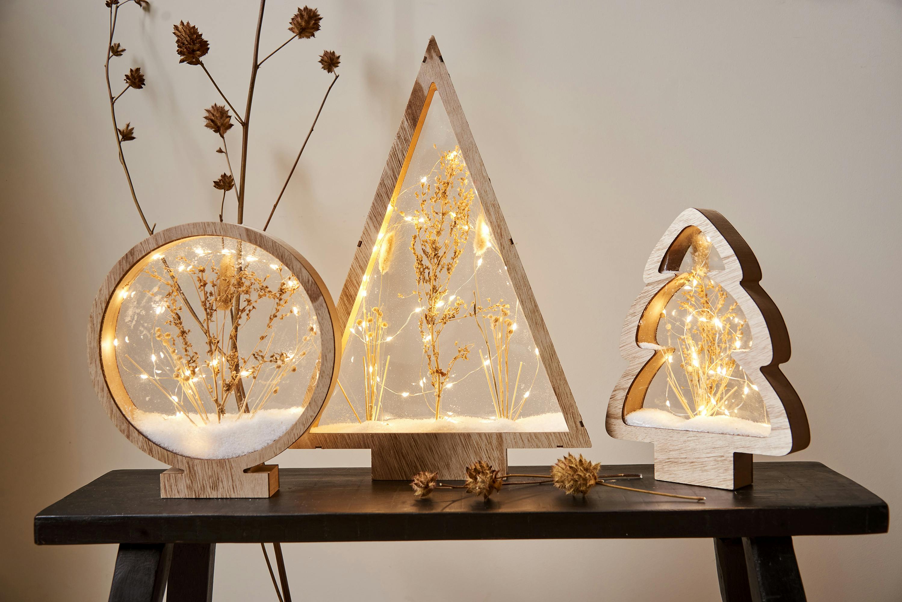 Il s'agit d'une décoration de Noël d'intérieur adaptée à une utilisation sur une table. Petit Sapin Lumineux Mini Sapin De Noël LED Avec Lumières Colorées Chaudes,Petit Arbre,Décorations Pour La Maison,15 Sapin à Piles Neige Artificielle Il suffit d'insérer les piles et d'actionner l'interrupteur pour que le sapin s'illumine immédiatement. Le set de sapin de Noël de table allie le charme rustique au style cottage moderne et crée une ambiance de Noël chaleureuse et confortable pour votre fête de Noël Le compartiment à piles est dissimulé dans le socle du sapin de Noël en bois. Ainsi, tout le monde peut profiter de cette décoration de Noël Sapin de Noël LED, bois de pin, IP44, H 47,5 cm | ETC Shop: lampes, mobilier, technologie. Tout d'une source. | ETC Shop Déco d'étagère sapin Créez votre propre scène hivernale magique Faut-il des piles ? Oui, cette décoration de Noël nécessite 2 piles AA, mais elles ne sont pas incluses dans l'emballage. Il suffit d'insérer deux piles AA et de l'allumer pour l'utiliser immédiatement. 【Winter Wonderland DIY】Cette décoration de Noël tout-en-un de style champêtre comprend un sac de neige artificielle à faire soi-même pour que vous puissiez personnaliser votre fête de Noël ! 【Cadeaux de Noël qui réchauffent le cœur】 La décoration de table moderne de Noël de Hanobe est parfaite pour décorer les fêtes de Noël ou comme cadeau de Noël unique et attentionné pour les amis et la famille qui aiment les décorations de Noël. Toutefois, la déco de Noël demeure l'une des étapes essentielles de la préparation des fêtes. Alors, voici quelques idées pour une décoration de Noël scintillante Petit sapin de Noël lumineux en bois H 28 cm | Décorations de Noël... Sapins pour cheminée Alliez le charme rustique au style champêtre moderne 1 Déco Noël vintage 2 Déco Noël champêtre 3 Déco hivernale douce 【Décoration de Noël lumineuse】Ce cadre de sapin de Noël de table en bois naturel avec veinage est décoré de petits sapins et d'un élégant renne en fer et est magnifiquement complété par des guirlandes lumineuses douces et chaleureuses. Sapin de Noël table Apportez une ambiance festive de Noël dans votre intérieur
