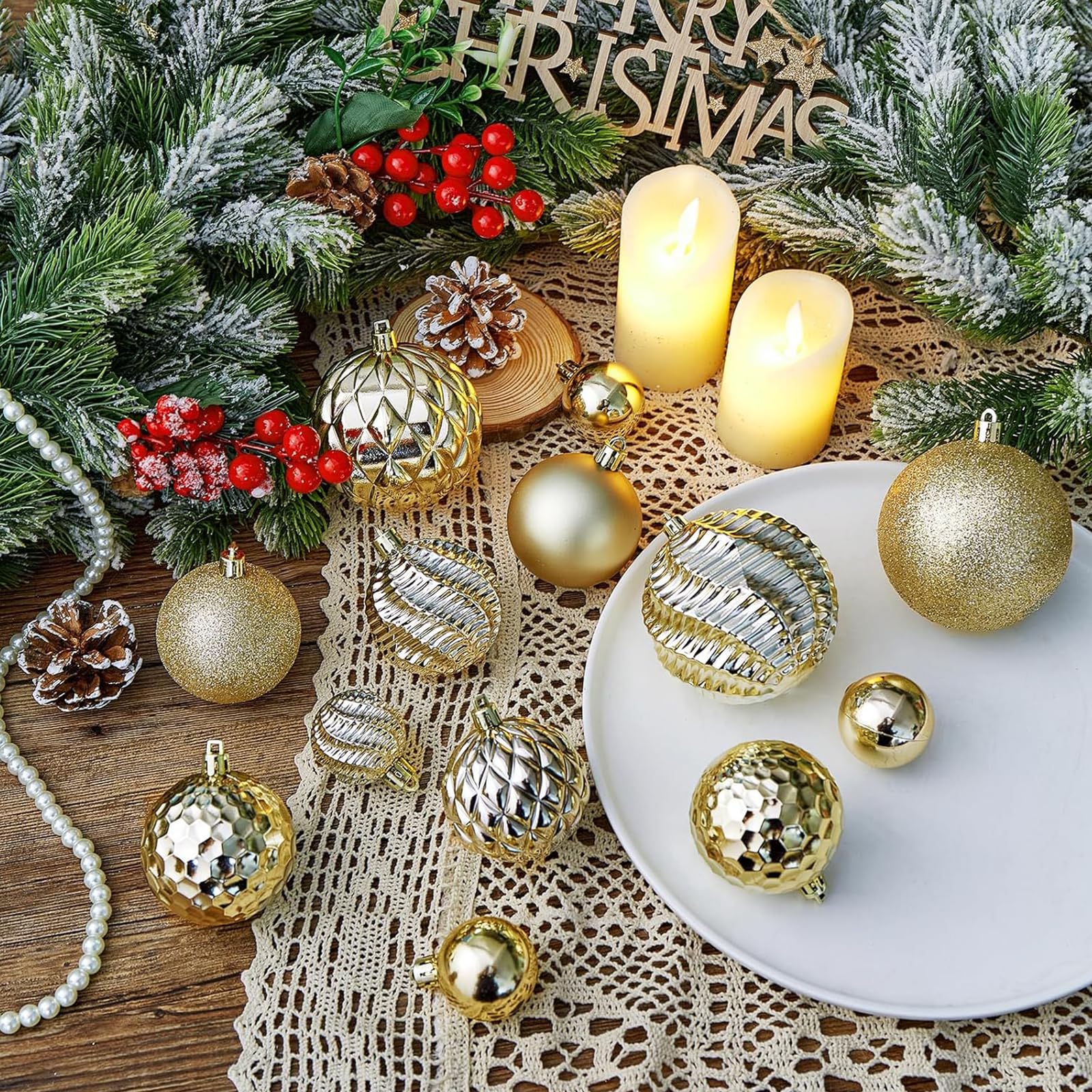 Boules Noel Doree Décoration Sapin Rouge Blanc Décorations De Noël Zocipro - Lot De 15 Ornements à Paillettes : Pommes De Pin, Sucettes, Boules Rouge Et Blanc Décorations Noël Paillettes Suspension Doré Noël couronne de fond avec des baies de cloches et de pommes de pin Branchage sapin réaliste avec pommes de pins et boules dorées Noël et... Chaque décoration (4 à 5 cm) combine l'art détaillé et des tons dorés luxueux : des boules à paillettes capturent la lumière, des boules disco apportent un charme rétro, les pommes de pin enneigées réchauffent avec l'inspiration de la nature, et les tambours dorés/cloches/boîtes cadeaux injectent un plaisir festif. Le design léger facilite la suspension, tandis que le revêtement résistant aux intempéries peut également être utilisé sur les jardins ou les terrasses couverts. Mélangez-le avec d'autres décorations pour une touche personnelle – laissez briller la magie dorée de Noël Transformez votre sapin de Noël en un monde de conte de fées doré avec notre ensemble de 24 décorations de sapin de Noël dorées. Incassable et réutilisable : fabriqué en plastique durable avec revêtement brillant : léger, résistant aux chutes et utilisable pendant plusieurs années – Idéal pour les familles avec enfants ou animaux domestiques. Utilisation polyvalente pour les fêtes : parfait pour les arbres de Noël, couronnes, guirlandes, cheminées ou arrière-plans de fête - Utilisable à l'intérieur et à l'extérieur (résistant aux intempéries pour les zones couvertes). Emballage prêt à offrir : livré dans une boîte cadeau soignée, une idée réfléchie pour les amis, la famille ou les cadeaux d'invités, également idéal pour les travaux manuels de Noël. Mains dans un pull confortable faisant une couronne rustique de Noël...