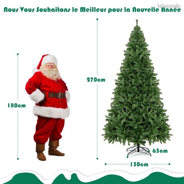 Ses 2132 branches et sa couleur verte naturelle imitent parfaitement un sapin de Noël authentique, apportant une touche de nature à votre intérieur. Il crée une atmosphère festive et ajoute une touche de nature tout au long de l'année, idéal pour Noël et d'autres occasions spéciales. Les branches articulées se déploient facilement, donnant un aspect réaliste et vous faisant gagner du temps lors de l'installation. 6 RAISONS DE NOUS FAIRE CONFIANCE : Aiguilles en PVC écologiques pour une sécurité maximale 2132 branches pour un sapin de Noël authentique Support en métal robuste pour une stabilité optimale Montage facile en 4 parties, instructions claires pour un rapide assemblage Branches articulées pour un déploiement aisé et un aspect réaliste Idéal pour décoration intérieure et extérieure, parfait pour Noël Détails Techniques : Couleur: Vert Hauteur : 270CM Matériaux : PVC + Fer Nombre de branches : 2132 Poids de l'article : 16 kg Forfait : 1 x Arbre de Noël 1 x Paire de gants 1 x Notice d'utilisation Sapin de Noël Artificiel 270cm - Gymax - Arbre Vert avec 2132 【Stabilité et Durabilité】Le sapin de Noël artificiel est équipé d'un solide support en métal, garantissant une stabilité et une durabilité optimales. Livré en 4 parties avec des instructions claires, le montage est facile et rapide. vidaXL Sapin de Noël artificiel XL - 300 cm - Branches en PVC - Vert... Vous pouvez laisser libre cours à votre imagination et décorer l'arbre avec votre famille et vos amis, rendant chaque année encore plus intéressante et impressionnante. Ses aiguilles en PVC respectueuses de l'environnement offrent un aspect réaliste et une sécurité d'utilisation. 【Facilité de Montage】Le sapin de Noel en 4 parties est livré avec des instructions claires et est facile à monter, démonter et ranger. Sapin De Noël Support Métal LA BOUTIQUE DE NOËL - Sapin De Noel Artificiel 210 Cm - Sapin De Noel Realiste, 1128 Branches Sapin De Noël Artificiel 270 Cm Ce sapin est grand, touffu et doux au toucher, comprenant 2132 branches: il fera une excellente décoration à Halloween. Les branches sont faites d'un matériau en PVC inodore, résistant aux fissures et imperméable. Le support métallique offre une grande stabilité et une grande solidité 【Personnalisation et Créativité】Ce sapin artificiel de première qualité est livré sans lumières ni décorations supplémentaires.