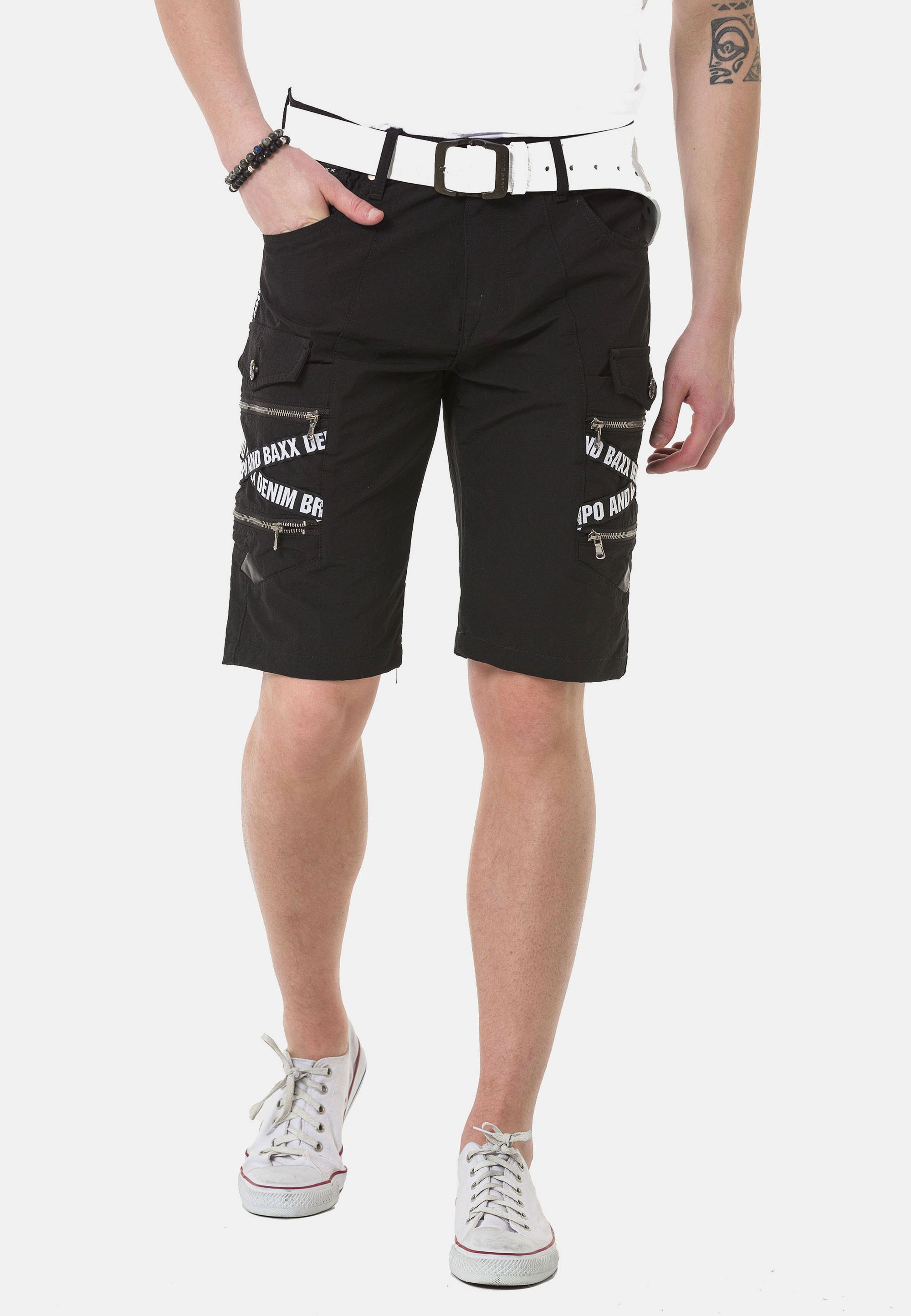 Cipo & Baxx Short - ecru/blanc Short Cargo Stonewashed Homme Cipo ≈ Baxx Pantalon De Otard En Jean Coupe Droite Avec Poches Cargo Pantalon Court Tendance 5 Poches Matériau de haute qualité – Fabriqué en denim durable, ce jean noir assure longévité et coupe confortable. ✓ Combinaisons polyvalentes – Qu'ils soient... ✔ Coupe regular-slim : Alliance parfaite entre confort et style avec un design coloré et travaillé pour un look estival unique. Cipo & Baxx Jean pour hoe Coupe droite avec coutures blanches - Bleu... ✔ Détails uniques : Taches de peinture, inscriptions variées, surpiqûres décoratives et motif nervuré type biker pour un style marqué. ✔ Style 5 poches polyvalent : Look classique avec passants de ceinture, fermeture zippée et poches cargo latérales supplémentaires.